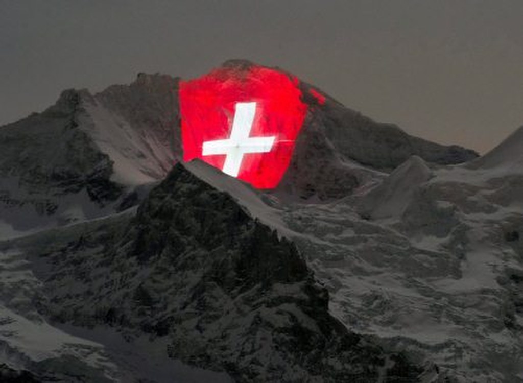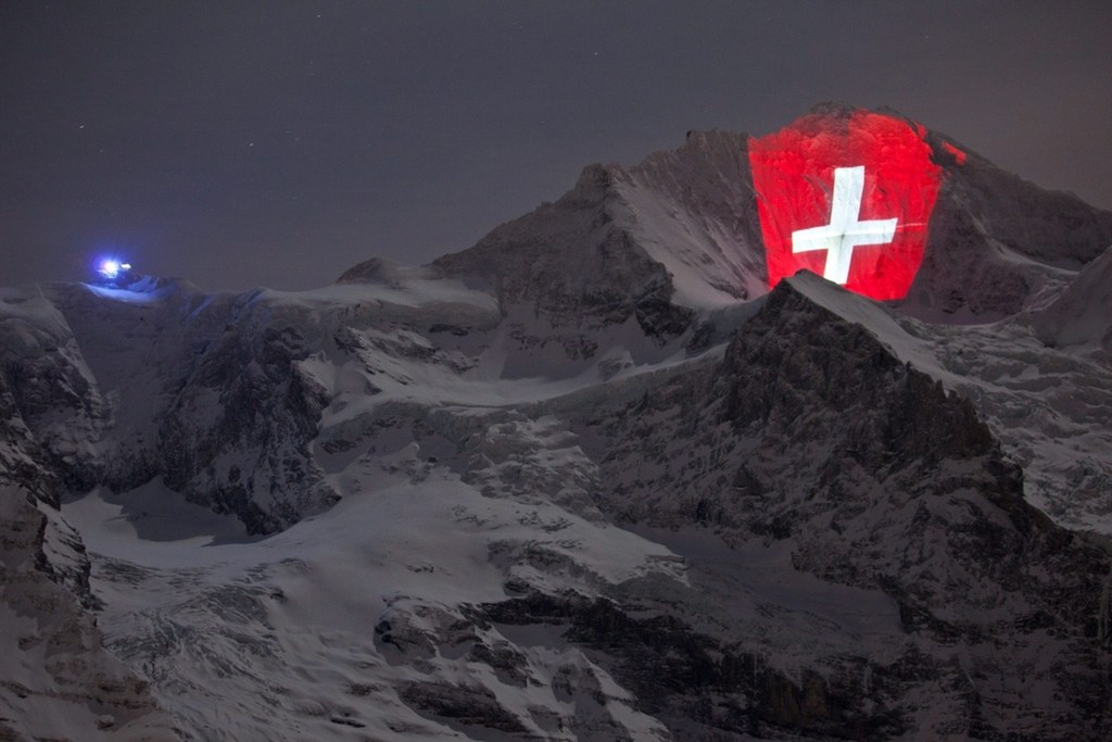 Na górskiej ścianie pierwszy obraz wyświetlono wieczorem w Nowy Rok. Rozbłysł na niej herb Szwajcarii - biały krzyż grecki na czerwonym polu. Wyświetlone zostanie również zdjęcie kolejki i portret jej fundatora Adolfa Guyer-Zellera.