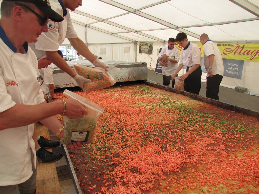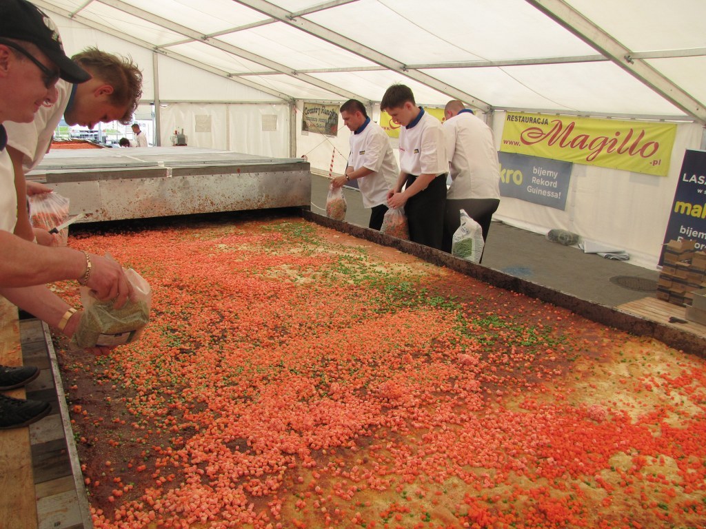 Włoska potrawa powstawała pod olbrzymim namiotem. Lasagne ułożono na metalowej tafli o wymiarach 25 na 2,5 metra. Nad konstrukcją przesuwał się z prędkością 4 metrów na godzinę specjalnie skonstruowany piec.