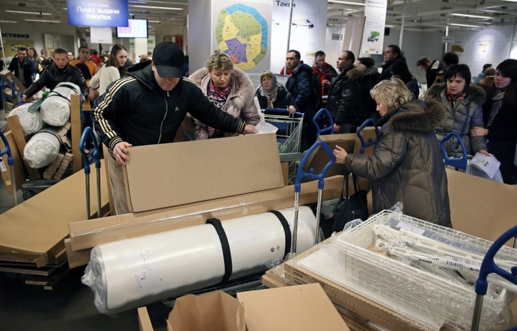 Rosjanie nie wierzą obietnicom Kremla i pozbywają się rubli. Wykupują importowane towary - od mebli, lodówek i telewizorów po makarony i sery.