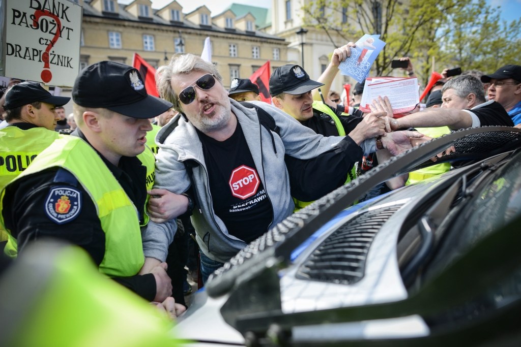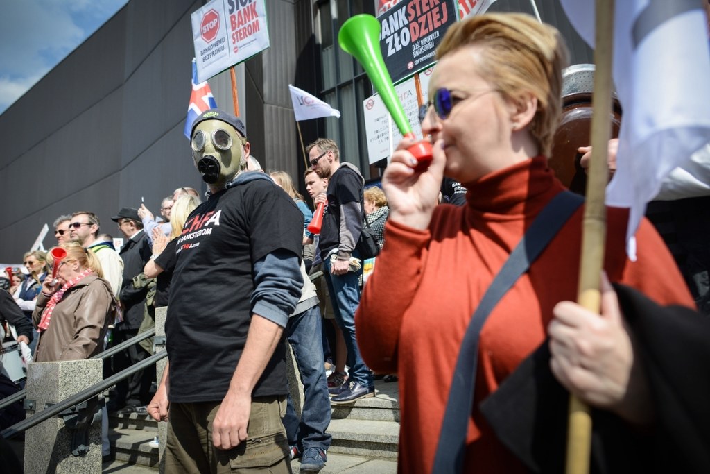 Manifestacja, zorganizowana przez Stowarzyszenie Stop Bankowemu Bezprawiu, rozpoczęła się pod siedzibą NBP na Placu Powstańców Warszawy; potem jej uczestnicy przeszli ulicami Świętokrzyską, Nowy Świat i Krakowskie Przedmieście przed Pałac Prezydencki. Nieśli transparenty z napisami: "prezydencie czas spełnić obietnice", "stop bankowemu bezprawiu", "bankierzy i KNF to oszuści", "złodzieje", "stop bankowemu niewolnictwu"; krzyczeli: "chodźcie z nami", a pod Pałacem Prezydenckim: "prezydencie dotrzymaj obietnicy".