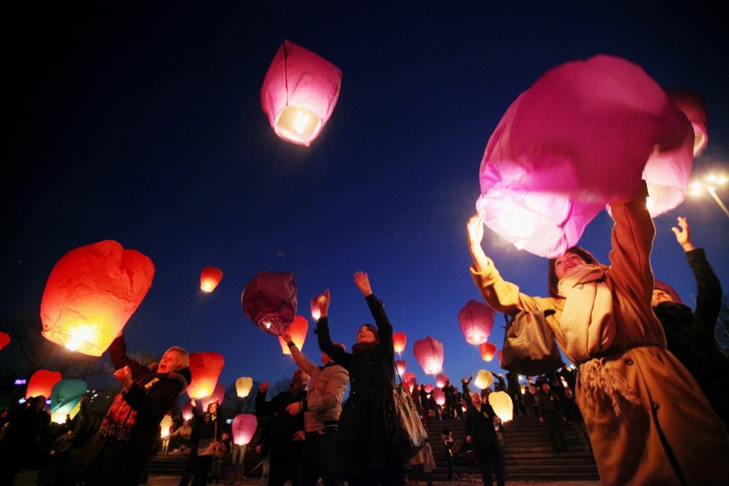 Ceremonia Lampionów Szczęścia - część imprezy charytatywnej na rzecz Japonii, zorganizowanej w Warszawie / PAP