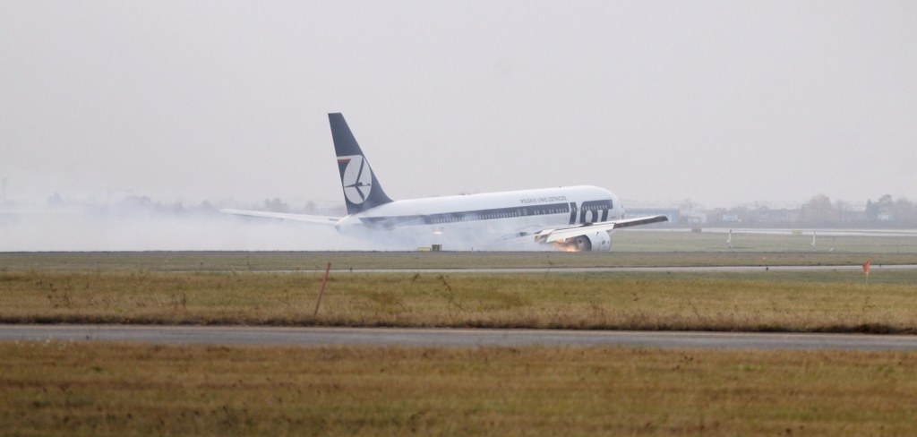 Samolot Polskich Linii Lotniczych LOT Boeing 767 lecący z Newark w USA do Warszawy, mający kłopoty z podwoziem wylądował awaryjnie na warszawskim lotnisku Okęcie. Na pokładzie samolotu było 230 osób. Nikt nie został ranny / PAP