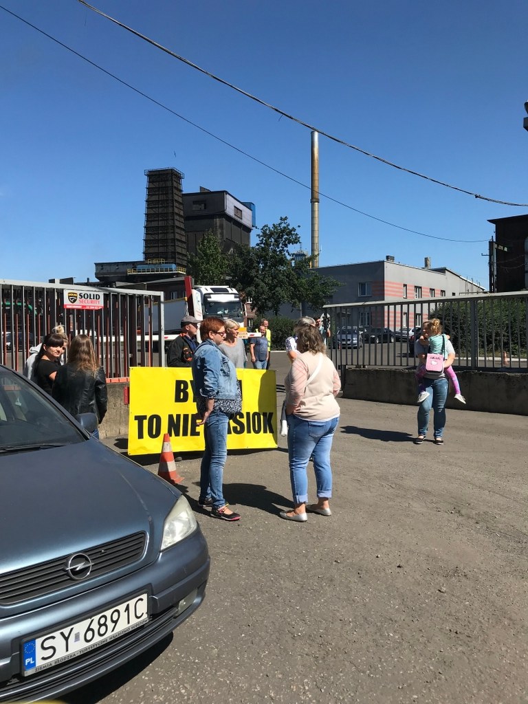 Mieszkańcy nie przepuszczają przyjeżdżających tam ciężarówek z odpadami. Protestujący mają ze sobą transparent z hasłem "Bytom to nie hasiok". W gwarze śląskiej oznacza to śmietnik.