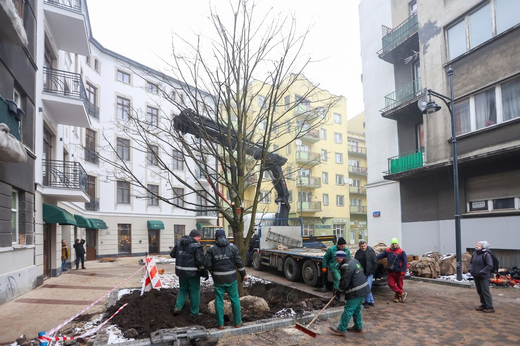 W Łodzi na zakręcającej ulicy, czyli skrzyżowaniu ul. Lipowej i Próchnika, gdzie powstaje woonerf (przestrzeń łącząca wiele funkcji, przyjazna dla mieszkańców – przyp. RMF FM) zostało posadzone największe od ponad 30 lat drzewo. To lipa o metrowym obwodzie pnia.