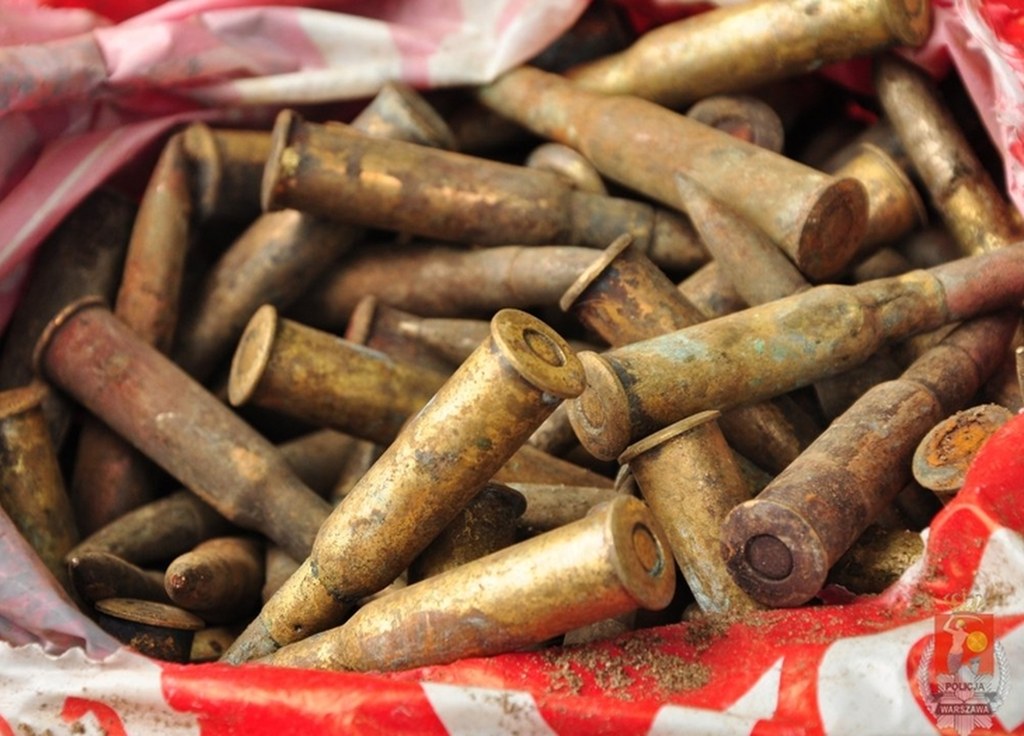 Prawie 1500 sztuk amunicji karabinowej 7,62 mm, dwa pociski artyleryjskie, 10 pocisków moździerzowych i granaty ręczne znaleźli policjanci w Wesołej pod Warszawą. Arsenał prawdopodobnie pochodzi z czasów drugiej wojny światowej.
