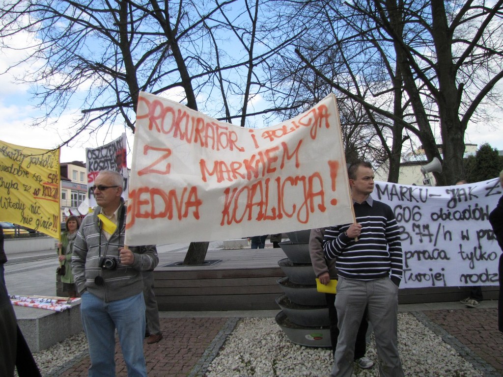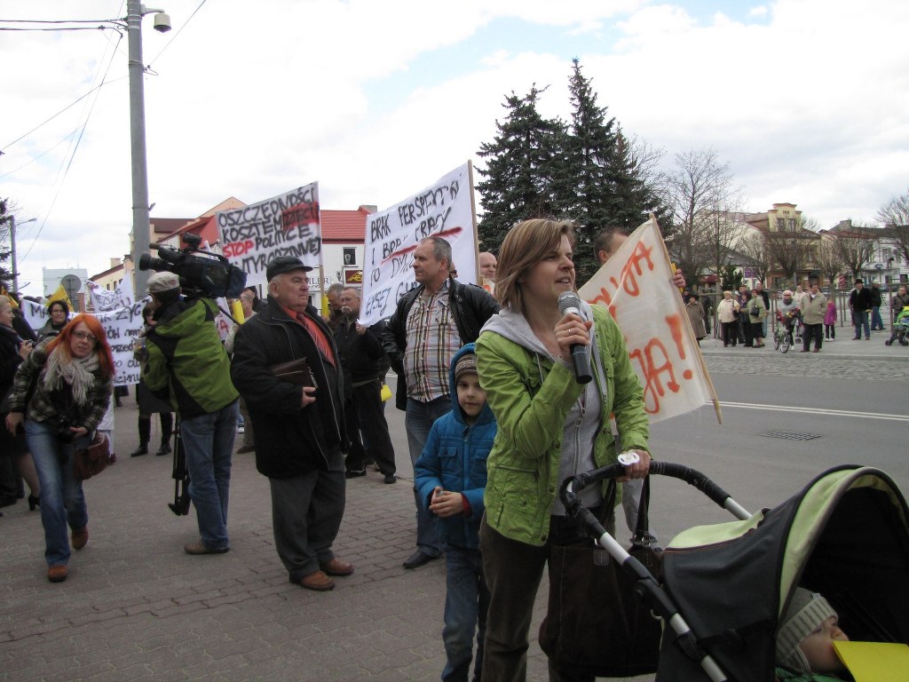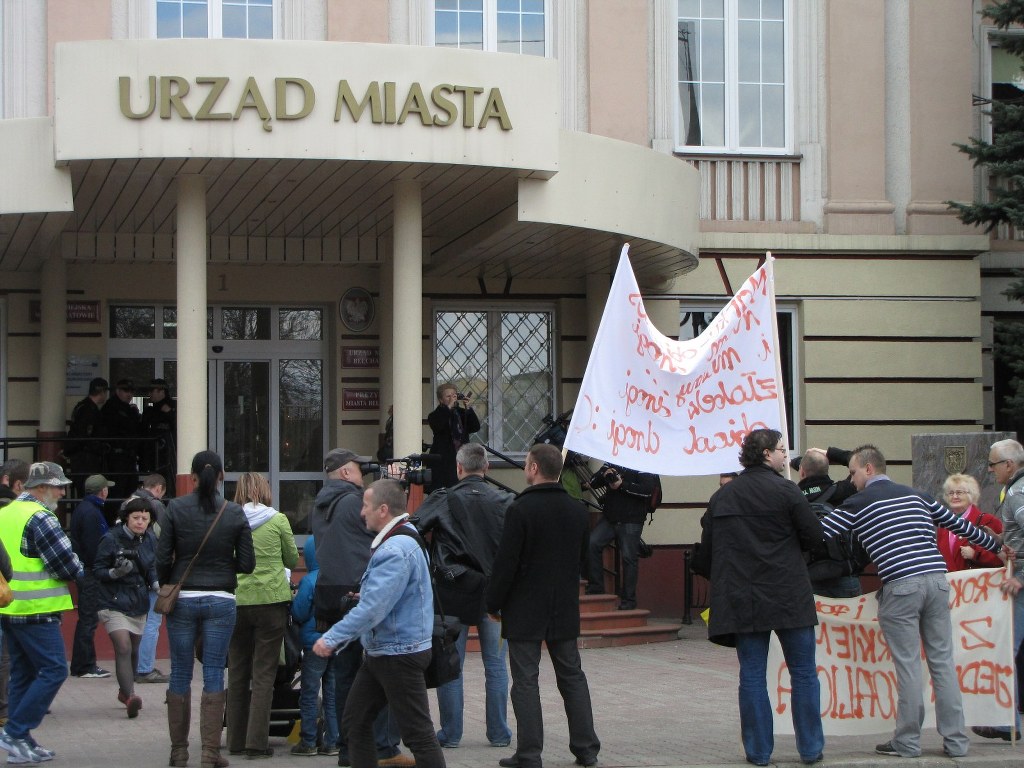 Protestujący skandowali hasła: "Prezydencie, otwórz przyłbice i wyjdź do nas na ulicę! Prezydencie, pakuj walizki - koniec twój już bliski!". Po przedstawieniu swoich racji, mieszkańcy zostawili na taczkach przed Urzędem Miasta kukłę, która miała symbolizować urzędującego prezydenta Bełchatowa - Marka Chrzanowskiego. To głównie z jego decyzji mieszkańcy nie są zadowoleni. Sprzed urzędu manifestacja przeszła ulicą Kościuszki pod budynek prokuratury, a potem ulicą 1-go Maja do Komendy Powiatowej Policji.