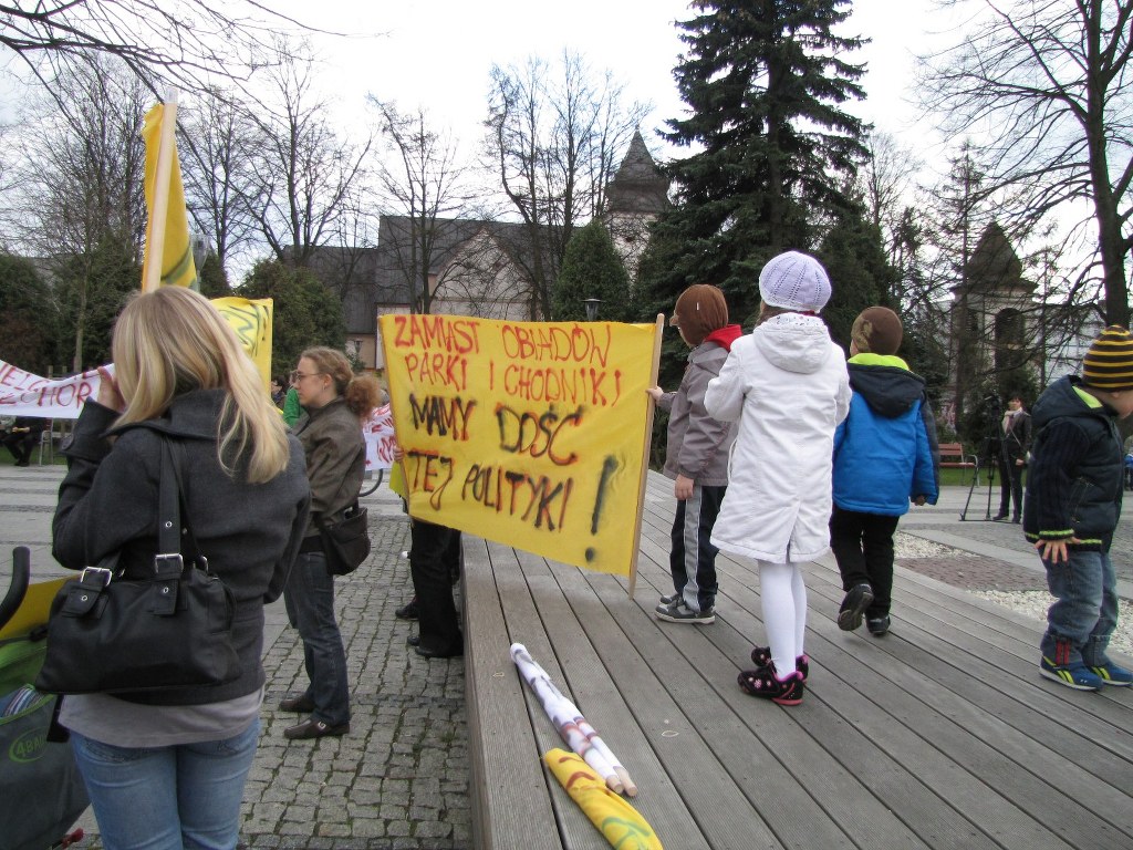 Rodzice nie zgadzają się na podwyżki stawek za uczęszczanie dziecka do przedszkola i na likwidację dotacji dla żłobków. Nie akceptują także rezygnacji miasta z prowadzenia stołówek szkolnych. Teraz w szkołach jest catering, a cena obiadu wzrosła dwukrotnie. Protestujący twierdzą, że w tej sytuacji ponad pół tysiąca bełchatowskich rodzin, których nie stać na opłacenie szkolnych posiłków, musiało z nich zrezygnować.