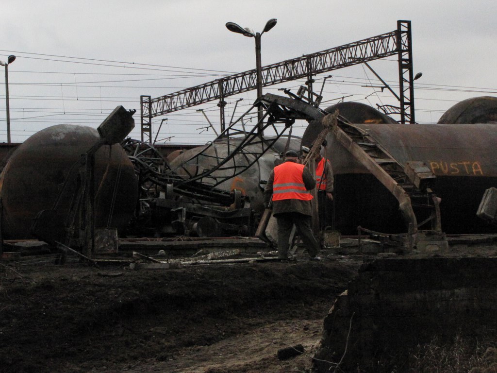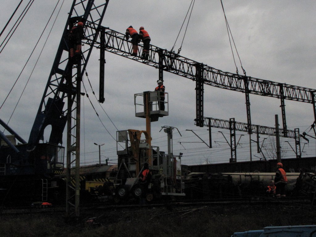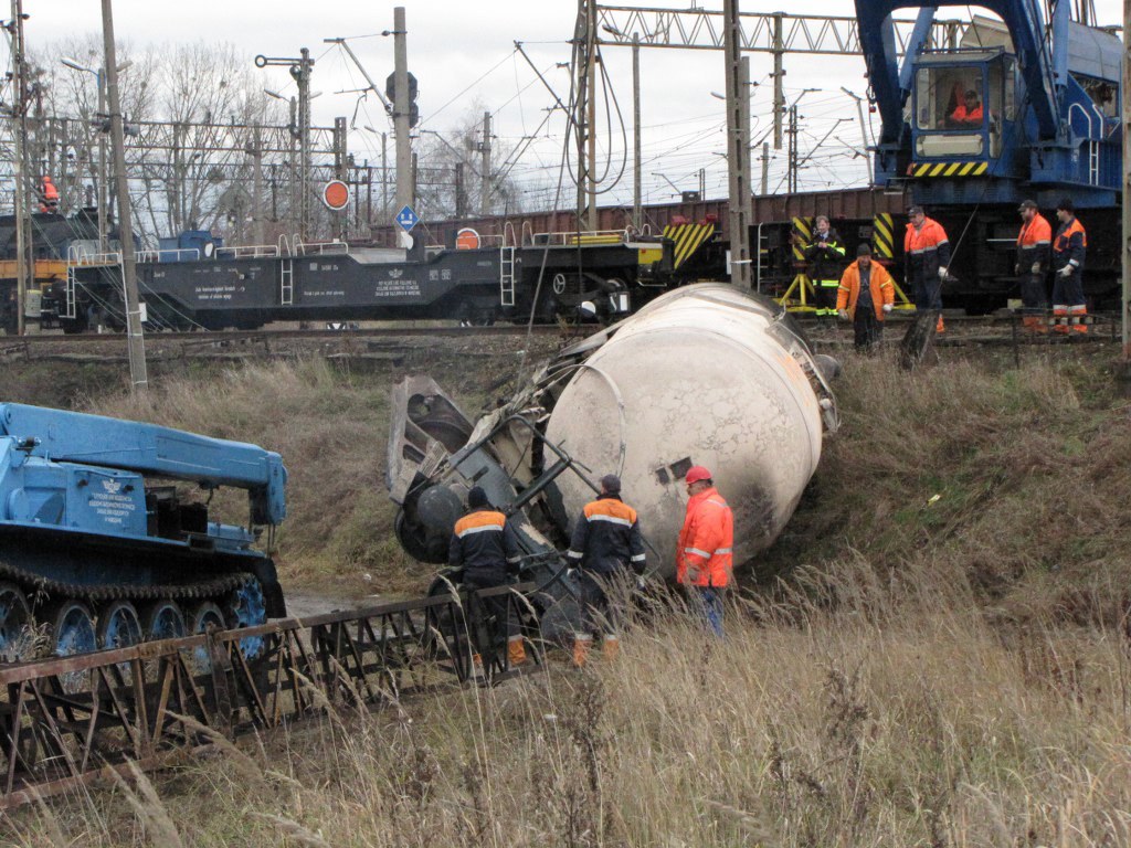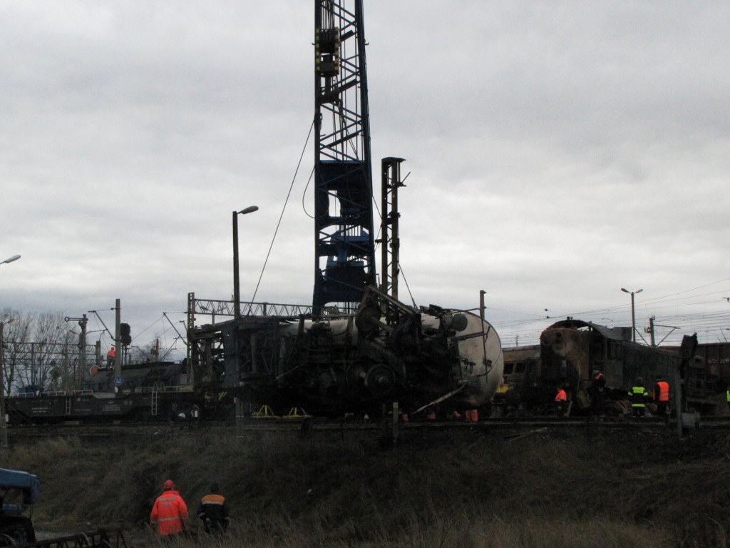 Pierwszą cysternę udało się zdjąć z szyn dopiero przed godz. 13. Przygotowania do tej akcji trwały kilka godzin, trzeba było usunąć spaloną trakcję elektryczną. Operacja nie jest łatwa, torowisko jest zniszczone, co utrudnia przemieszczanie dźwigu.