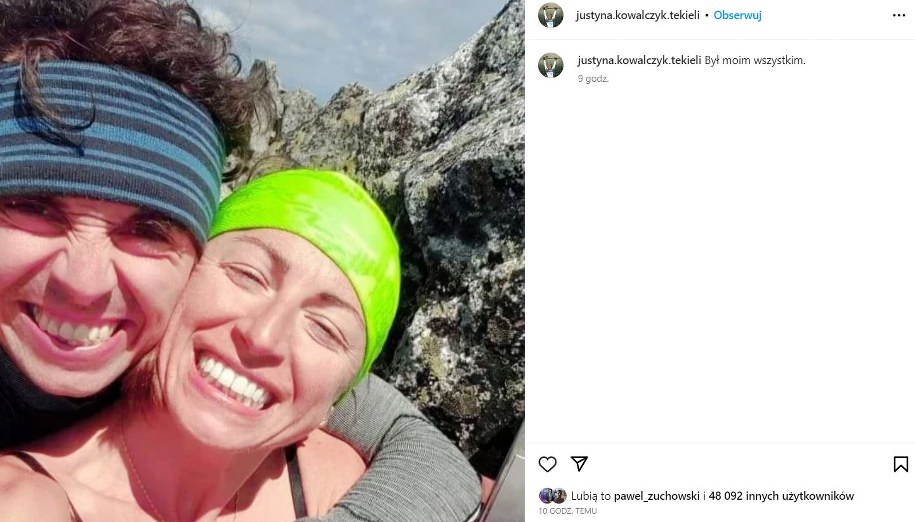 Wieczorem na Instagramie Justyna Kowalczyk-Tekieli opublikowała kolejny wzruszający wpis. Na zamieszczonym zdjęciu widać roześmiane, szczęśliwe małżeństwo. Mistrzyni olimpijska zamieściła krótki, chwytający za serce wpis: "Był moim wszystkim".