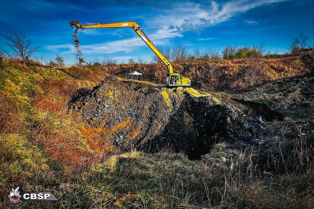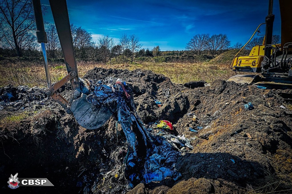 "W powiecie lubińskim na terenach poeksploatacyjnych oraz rolnych ujawniono odpady komunalne, budowlane i niebezpieczne, które były zakopane pod grubą warstwą betonu. W ten sposób sprawcy próbowali uniemożliwić ich wykrycie i utrudnić wykorzystanie specjalistycznego sprzętu" - podkreśla CBŚP.