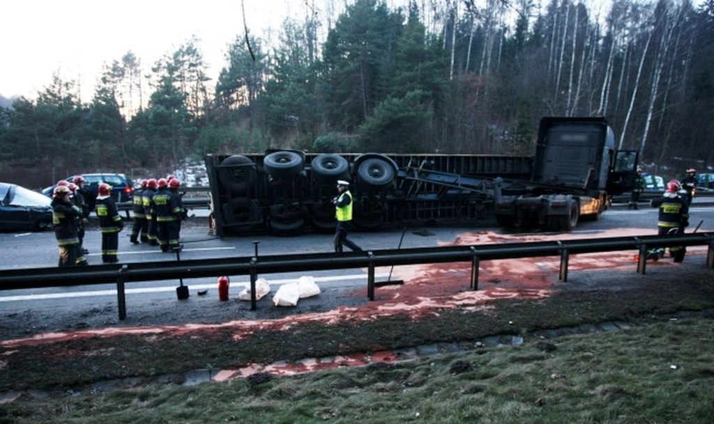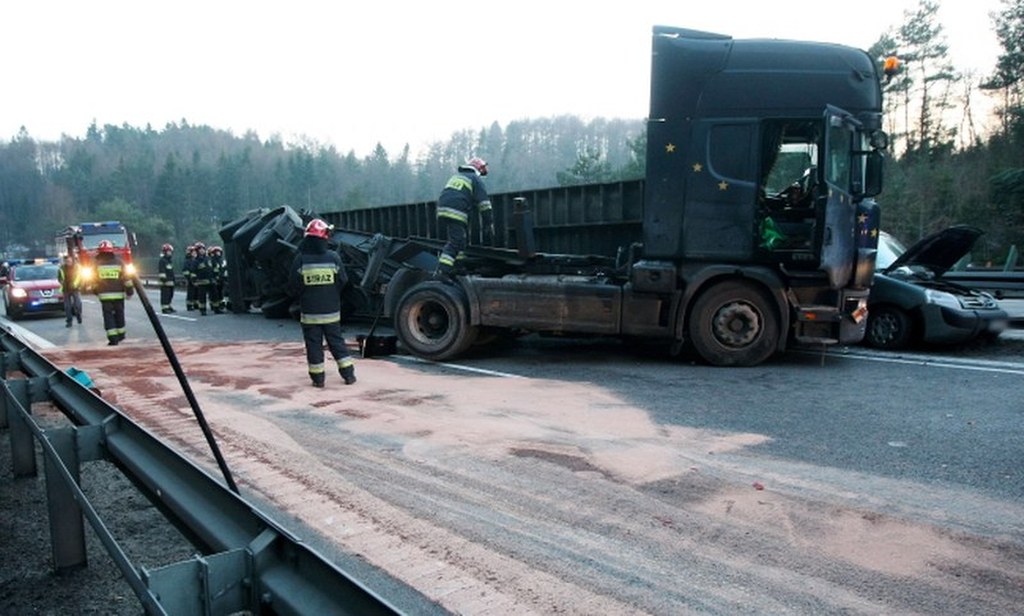 Według wstępnych ustaleń policji tir gwałtownie hamował - nie wiadomo jeszcze z jakiego powodu. W efekcie przewróciła się naczepa tira - niemal całkowicie zmiażdżyła jedno z aut osobowych, drugie wpasowało się miedzy barierki a naczepę. Potem w naczepę uderzyły jeszcze dwa pojazdy.