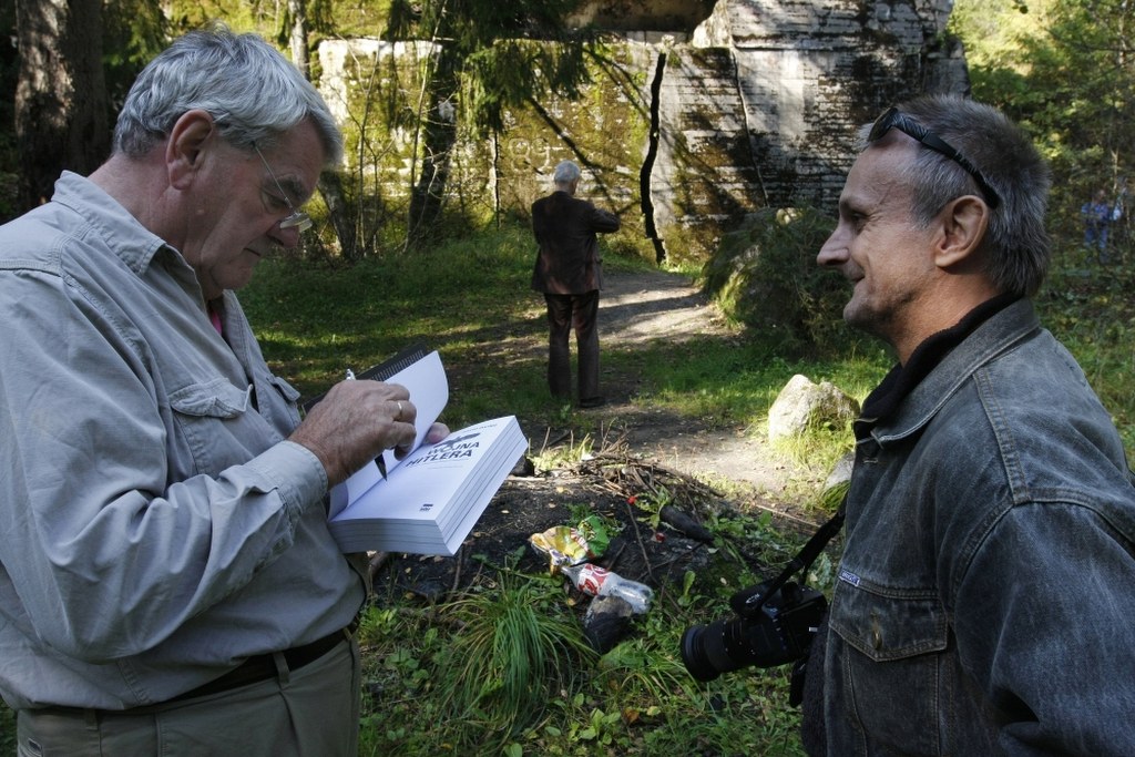 Dziś dziennikarze czekali na niego w Gierłoży, on w tym czasie oprowadzał uczestników swojej wycieczki po obiektach w Pozezdrzu. W tym miejscu czekał na niego natomiast miejscowy łowca autografów z książką "Wojna Hitlera". Powiedział, że drugi dzień z rzędu przyjeżdżał z Giżycka do lasu w Pozezdrzu. O sobie powiedział tylko tyle, że jest miłośnikiem historii.