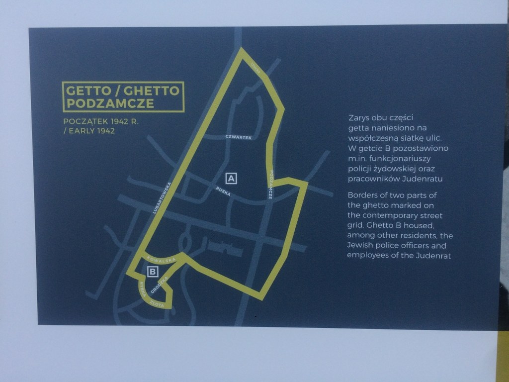 Wystawa ukazuje wielowątkową historię getta na lubelskim Podzamczu oraz - będącego jego kontynuacją - getta szczątkowego w Majdanie Tatarskim. Materiały zebrane są na 20 planszach.