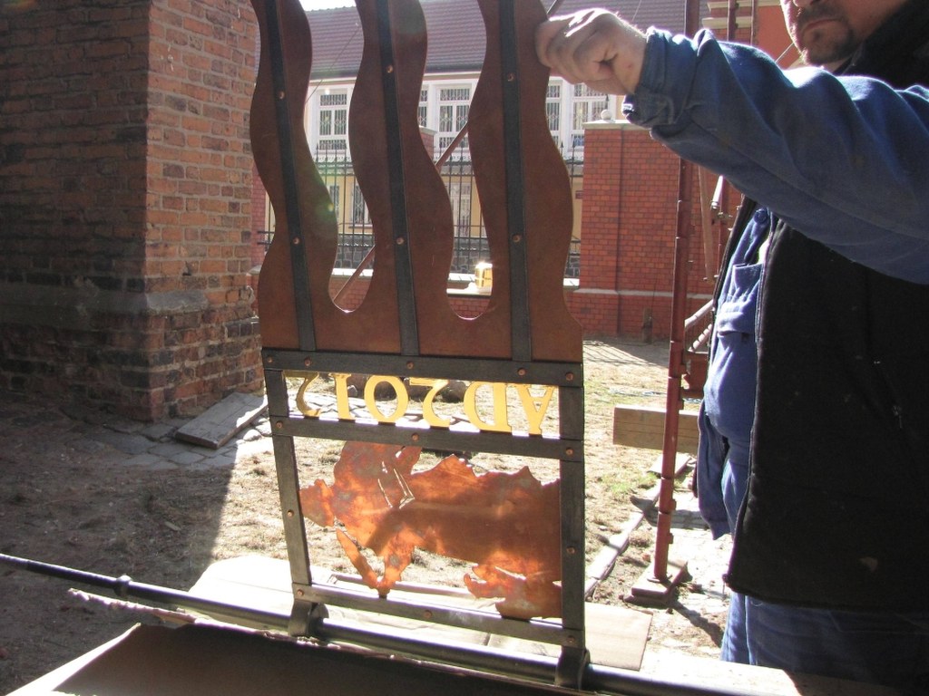 Montaż sygnaturki będzie skomplikowaną operacją. Najpierw trzeba poskładać w całość ważące 6 ton elementy. W drugiej połowie dnia 50-metrowy dźwig wyniesie konstrukcję na dach kościoła. Jest to bardzo duża wysokość, musi to też najechać na skrzyżowanie naw z transeptem, więc jest to na środku dachu kościoła. Trzeba wygrodzić teren wokół. Wszystko zacznie się wcześnie rano, bo wykonawcy muszą jeszcze wnieść podstawę pod konstrukcję. Cała operacja będzie trwała jak sądzę wiele godzin- mówiła reporterowi RMF FM Kubie Kałudze Iwona Berent z Nadbałtyckiego Centrum Kultury.