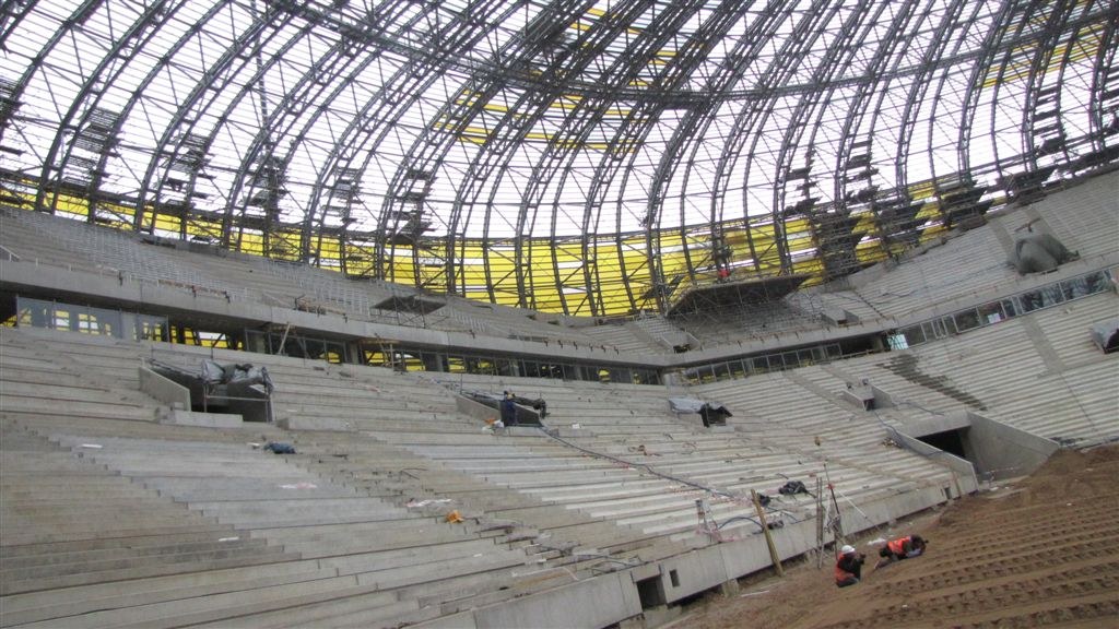 1700 ludzi pracuje na budowie bursztynowej PGE Arena w Gdańsku. Prace zostaną zakończone 30 kwietnia. Potem już tylko odbiory techniczne, a pierwszy mecz reprezentacji Polski i Francji - 9 czerwca.