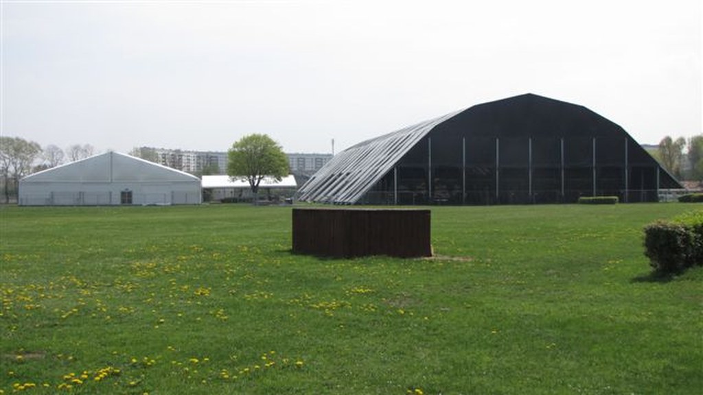 Namiot-gigant stanął na hipodromie w Sopocie tak, by publiczność mogła dojść do niego z przystanku Szybkiej Kolei Miejskiej Gdańsk-Żabianka.
