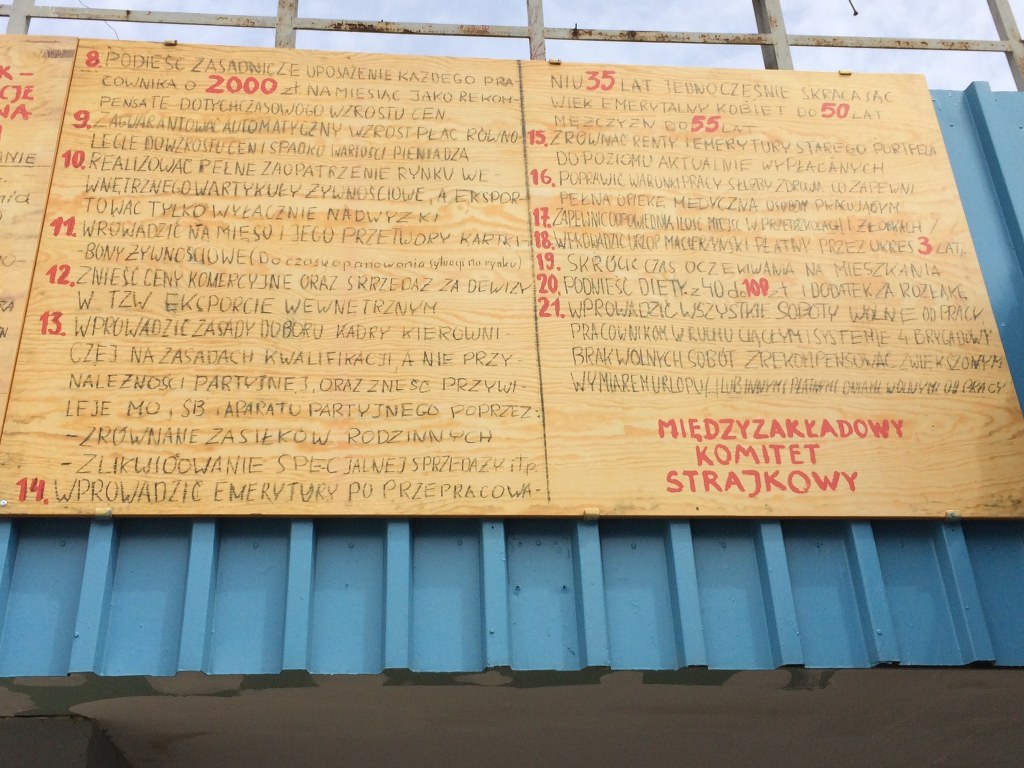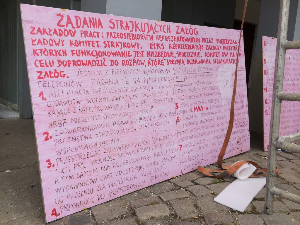 Poprzednią kopię tablic z postulatami sierpniowymi powieszono 2 lata temu. Trzeba ją było jednak wymienić, bo treść postulatów wyblakła, a tablice stały się różowe.