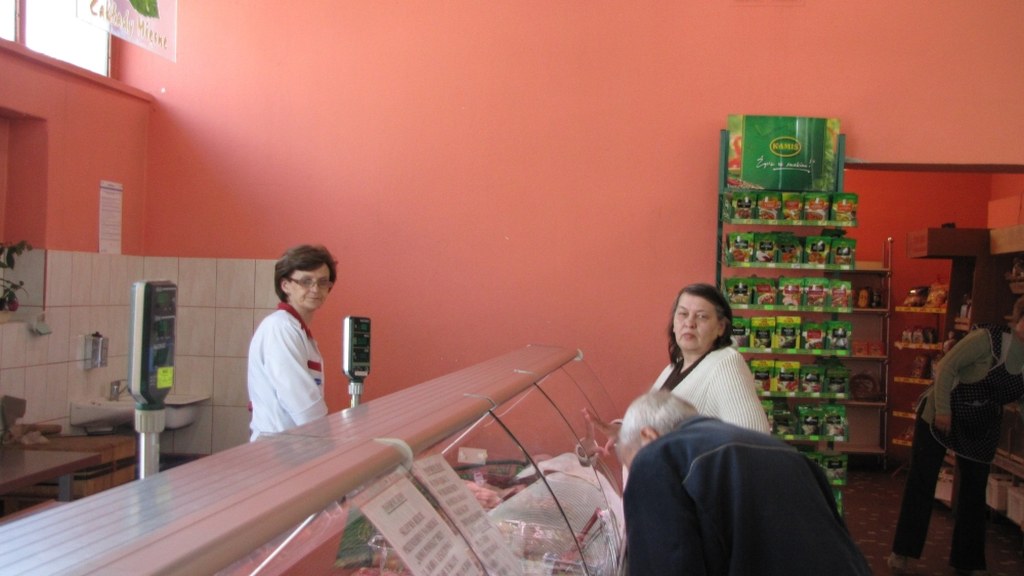 Gabloty nigdy nie było. Nie ma klientów, których się nie obsługuje - zdradza Pani Ewa, która pracuje za ladą z wędlinami i dodaje, że są klienci dowcipni, niektórzy przychodzą się wyżalić, przychodzą z różnymi problemami - tak jak do fryzjera się idzie. Dziś na ścianach wiszą informacje o bardziej nowoczesnych zabezpieczeniach.