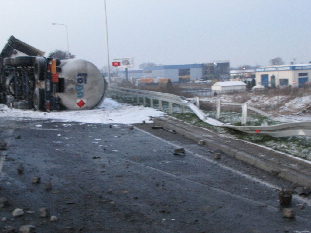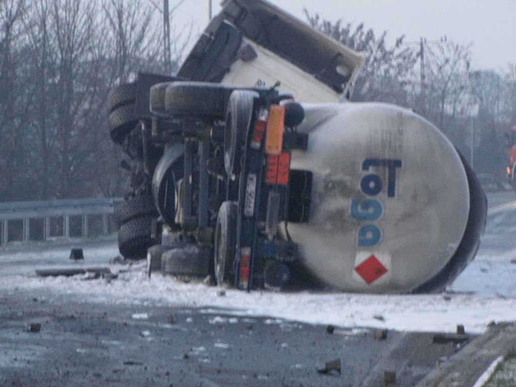 Ponad dobę trwało usuwanie cysterny z gazem na drodze krajowej nr 15 pod Lubawą. Wczoraj w nocy wywrócił się tam samochód przewożący prawie 20 ton gazu i zatarasował jezdnię na obwodnicy. Podczas wypadku nie doszło na szczęście do rozszczelnienia zaworów i wycieku gazu, ale trzeba było ewakuować kilkaset osób.