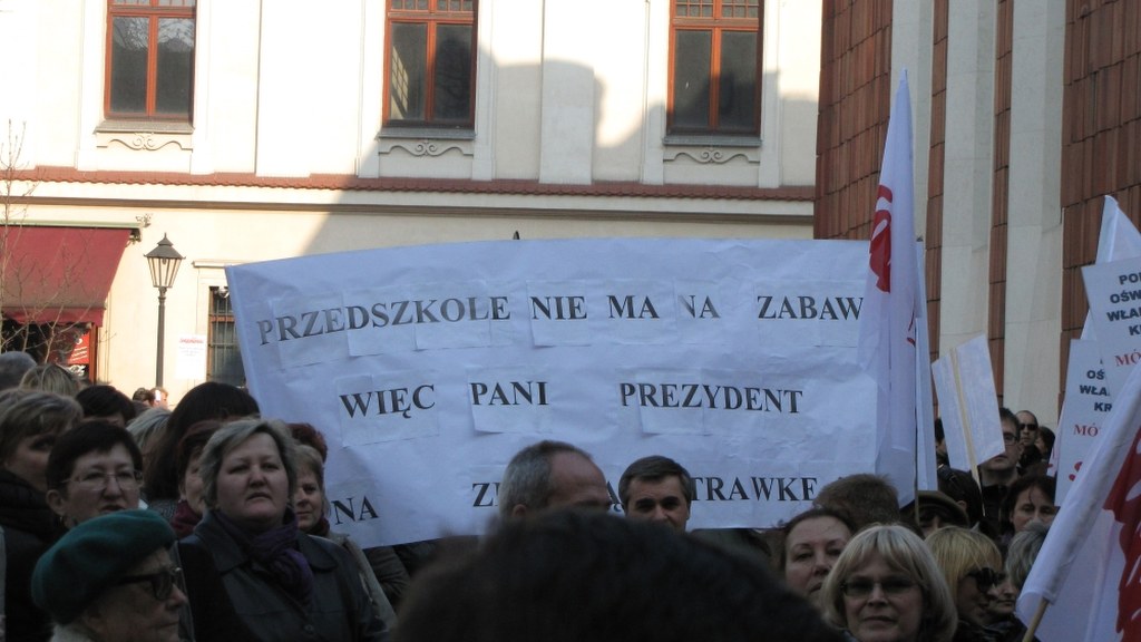 Protestujący pojawili się z transparentami przed Urzędem Miasta Krakowa. Organizatorami byli przede wszystkim członkowie Związku Nauczycielstwa Polskiego, którzy obawiają się zwolnień w placówkach oświatowych. Nikt z uczestniczących w demonstracji osób nie wierzy już, że władze Krakowa definitywnie wycofają się z planowanych redukcji zatrudnienia w szkołach i przedszkolach, a także z zapowiedzi zwolnień kucharek w stołówkach.