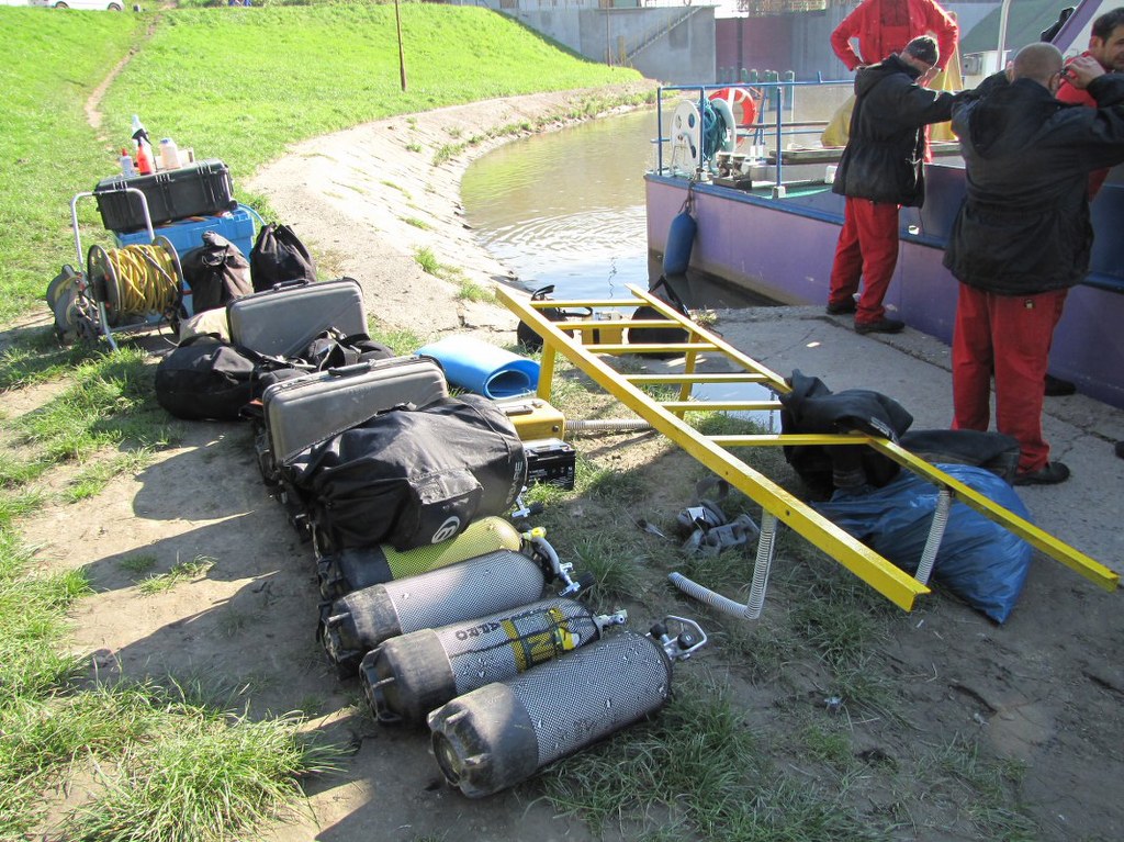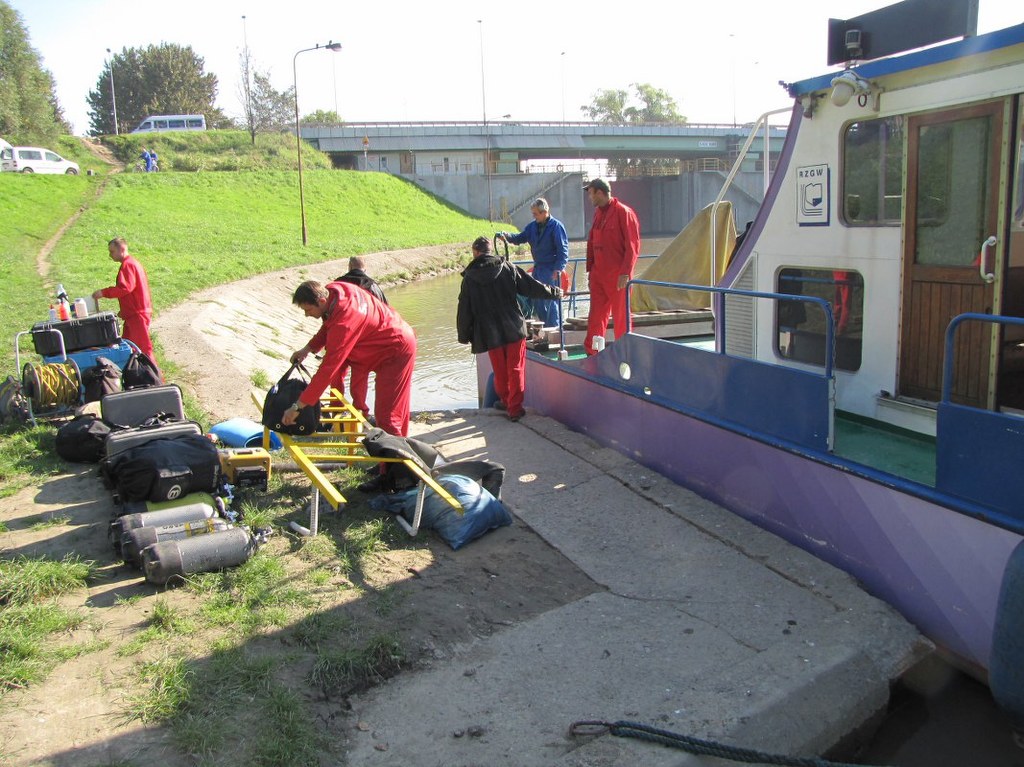 Nurkowie zejdą pod wodę z pokładu holownika - statek zrzuci kotwicę bardzo blisko barek i stopnia wodnego. Specjaliści mają do dyspozycji kilka butli z tlenem, specjalne lampy i kamerę.