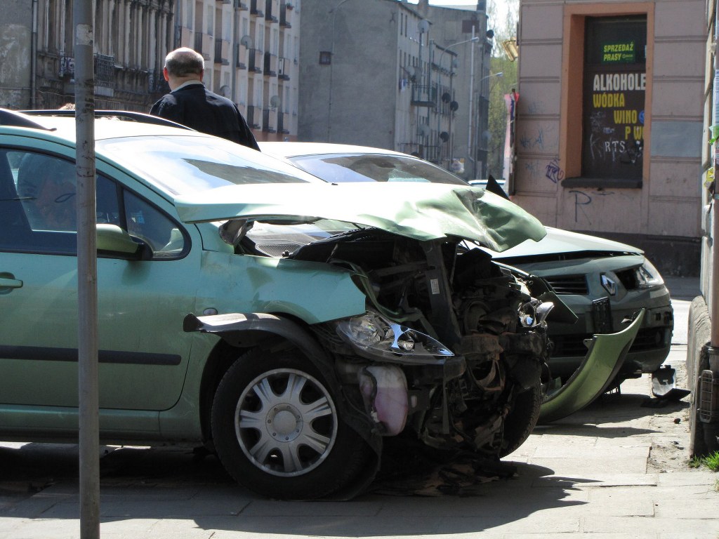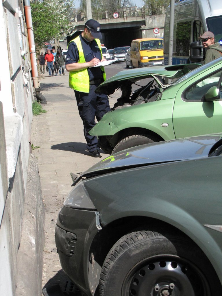 Poważne utrudnienia w Łodzi na wysokości skrzyżowania ulic: Tuwima, Tramwajowej i Wysokiej. Kierowca samochodu osobowego zignorował znak STOP i zderzył się z drugim autem.