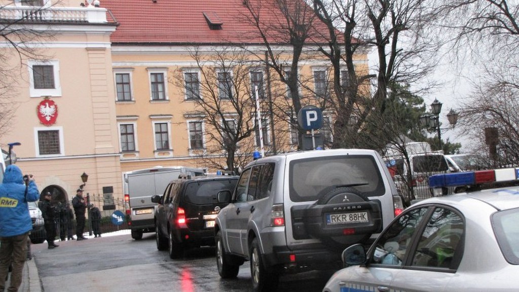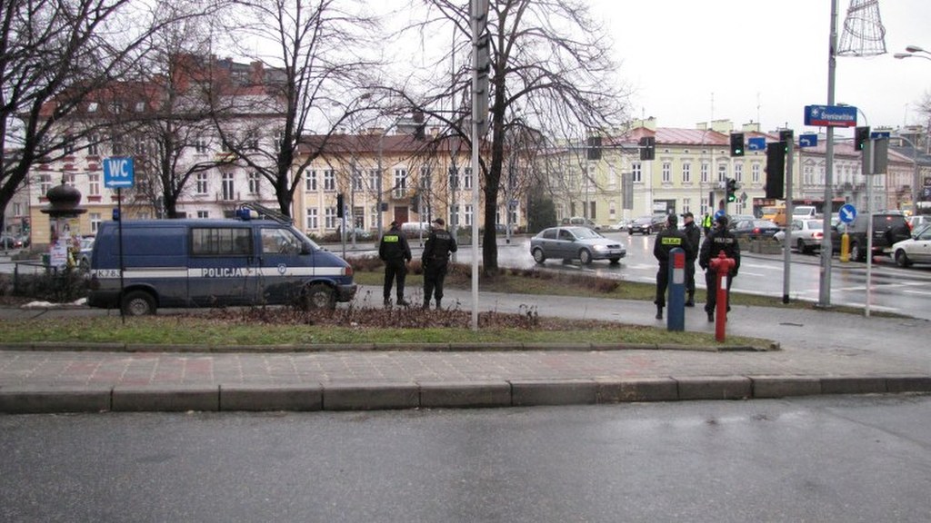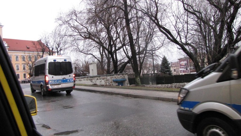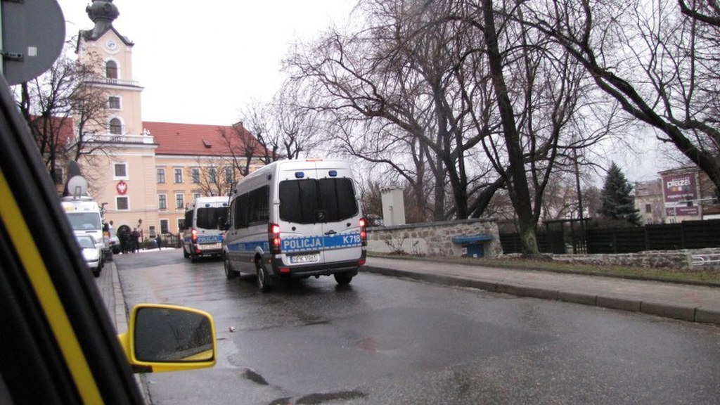 Sam Trynkiewicz do sądu został przewieziony z więzienia pod silną eskortą policji. Traktowany jest on bowiem nadal, jako szczególnie niebezpieczny przestępca. Przed pojawieniem się więziennego konwoju, na chodnikach wokół sądu ustawili się policjanci z bronią gładkolufową. Kiedy kolumna samochodów na sygnale zbliżała się do Placu Średniawitów, ruch został wstrzymany. Chwilę później pojawiło się siedem aut, w tym dwie furgonetki. W jednej z nich był Trynkiewicz.