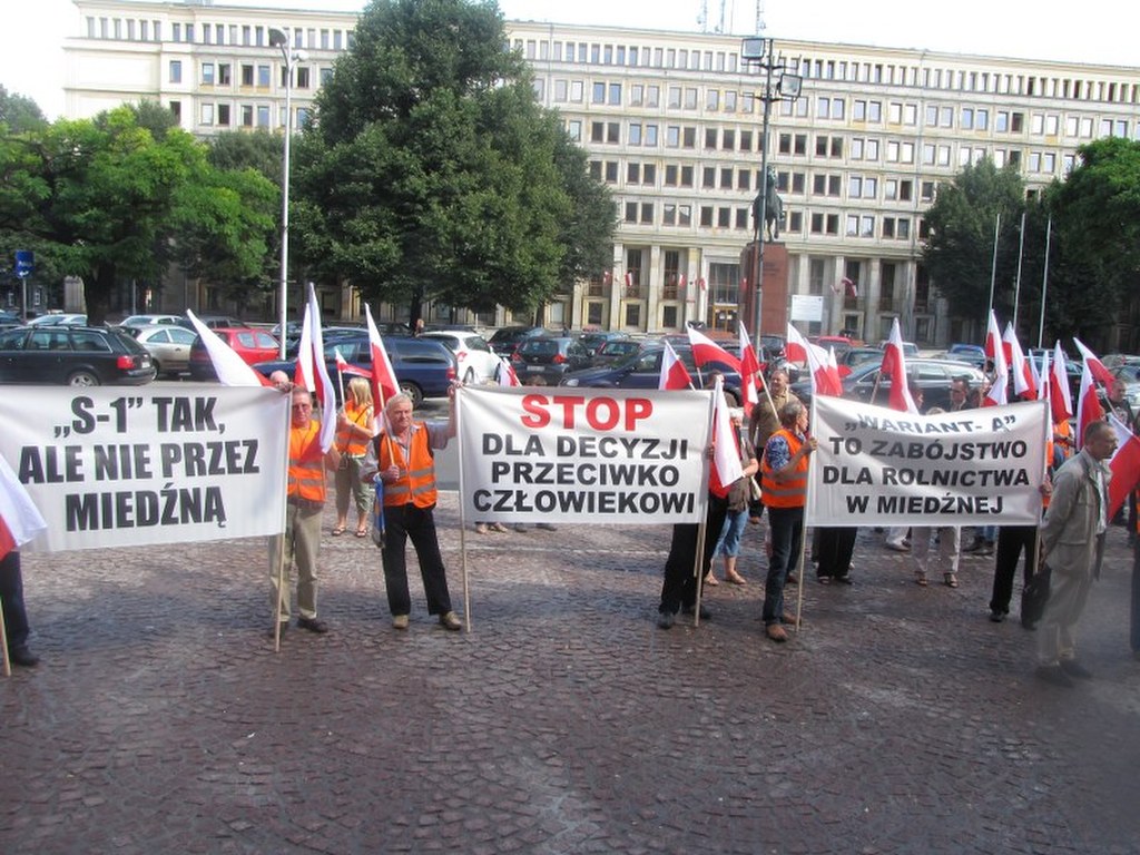 Kilkudziesięciu mieszkańców Miedźnej w Śląskiem przyjechało dziś do Katowic, by demonstrować przeciwko budowie drogi ekspresowej w ich miejscowości. Demonstranci przywieźli też specjalną petycję do wojewody.