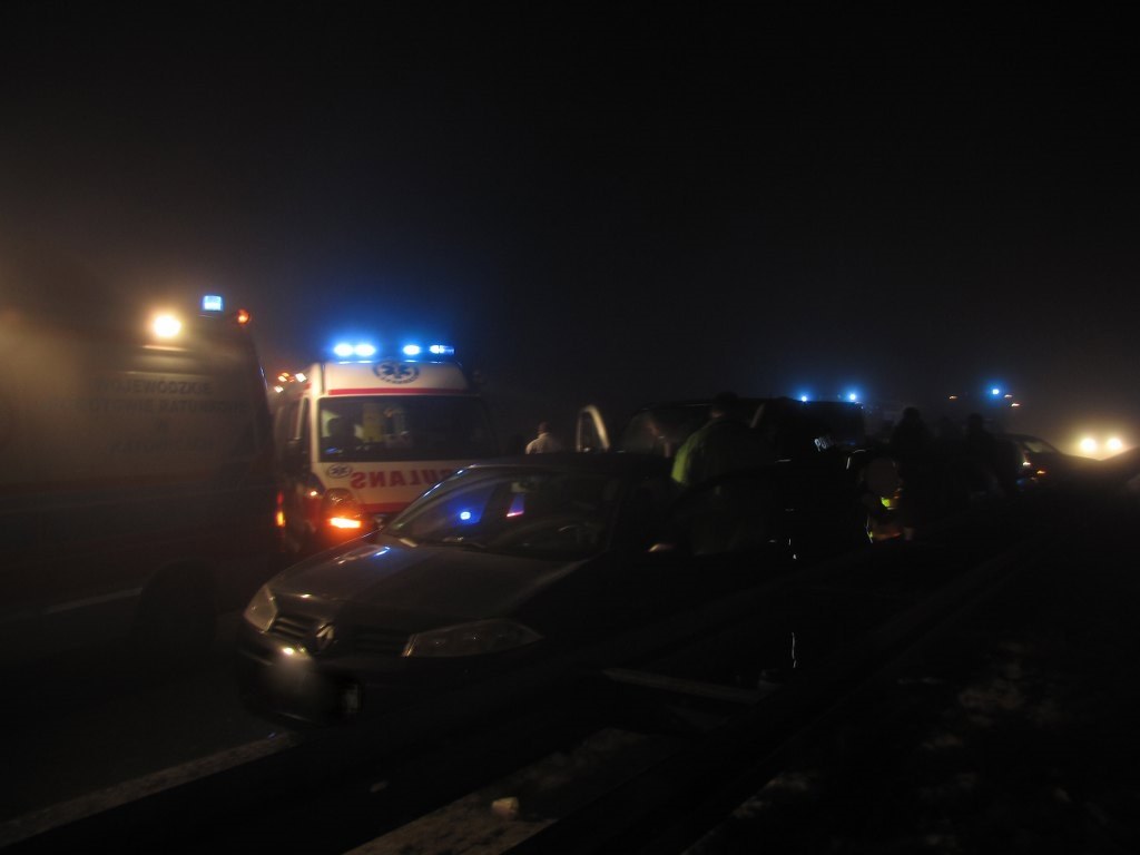 Na drogach Dolnego Śląska i Śląska jest bardzo mglisto i ślisko. Dziś w nocy 33 pojazdy zderzyły się na autostradzie A4 w Gliwicach. Do dwóch karamboli doszło na odcinku pomiędzy węzłem Ostropa i węzłem Bojków, na jezdni w kierunku Katowic. W obu wypadkach 10 osób zostało rannych.
