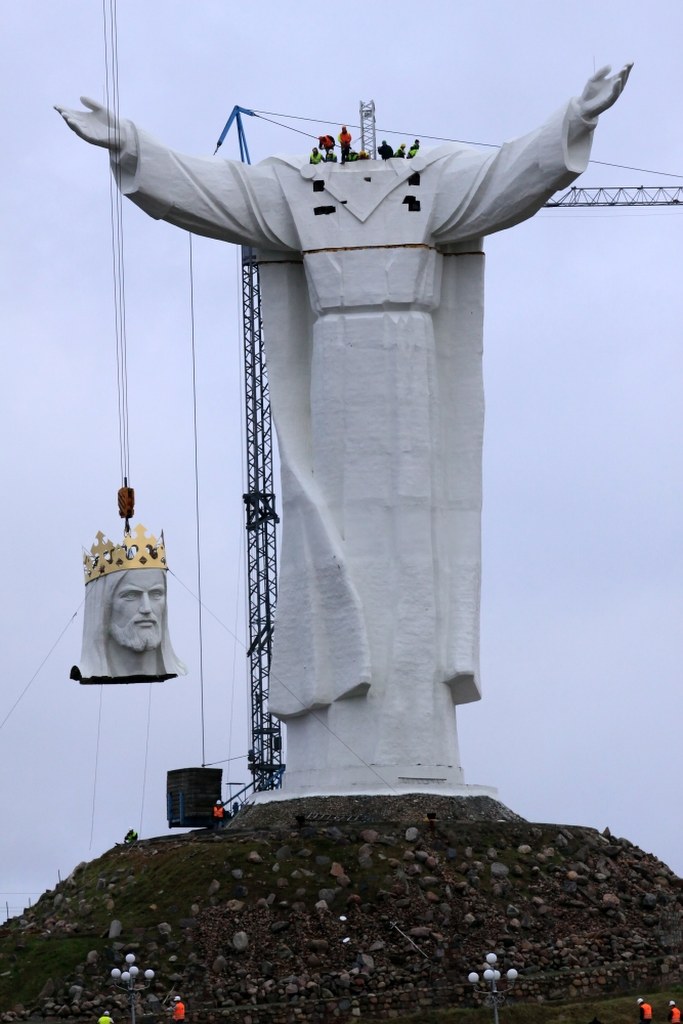 Zamontowano ostatnie elementy największego na świecie pomnika Chrystusa Króla, który powstał w Świebodzinie w Lubuskiem. Głowę i ramiona postaci zainstalowano przy pomocy ponad 700-tonowego dźwigu. W całości pomnik ma ponad 50 metrów wysokości, z czego 16 metrów to usypany kopiec. Na szczycie 33-metrowej figury znajduje się pozłacana korona. Ciężar całej konstrukcji szacowany jest na 440 ton.