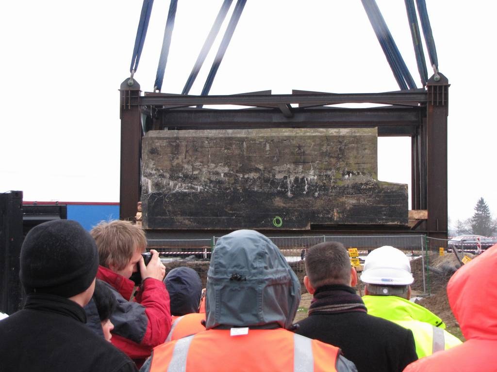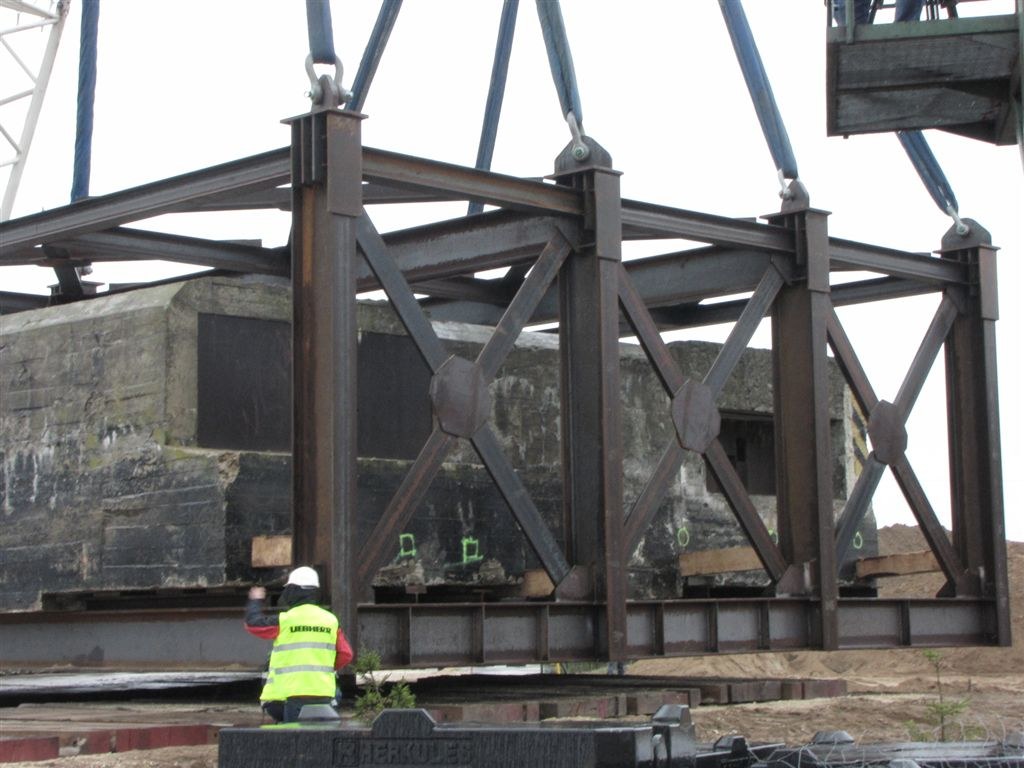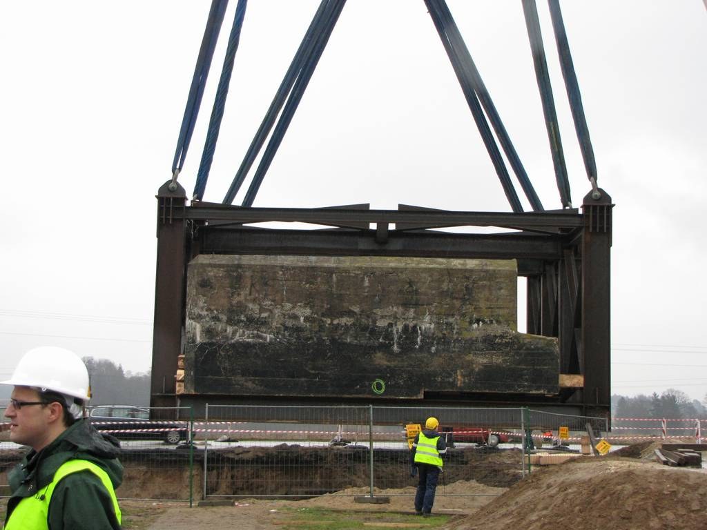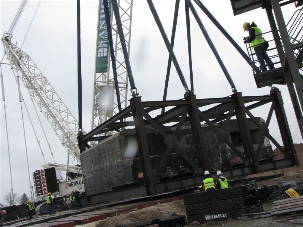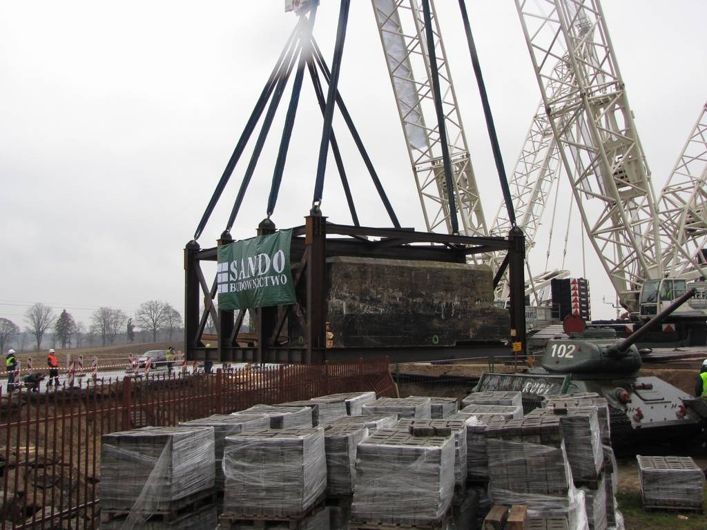 Po wydobyciu z ziemi - jak opisuje reporter RMF FM Tomasz Fenske - bunkier został obrócony tak, by znalazł się między dźwigami. Jeszcze przed południem rozpocznie się mozolne przewożenie go na nowe miejsce.