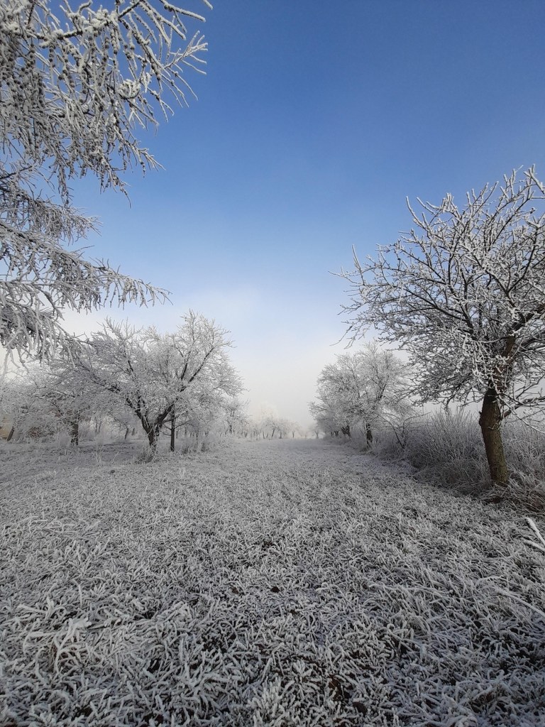 To pierwszy dzień 2021r na Jurze. Ale zimowa biel nie pojawiła się tam po intensywnych opadach śniegu. Tych nie było wcale. Za to od dwóch dni praktycznie nieprzerwanie, z wyjątkiem kilku godzin w ciągu dnia, Jurę spowija gęsta mgła. A ponieważ, zwłaszcza w nocy, jest kilka stopni mrozu, wszystko otula marznąca szadź... Co pewien czas przez opary mgły nieśmiało próbuje też przebijać się słońce...