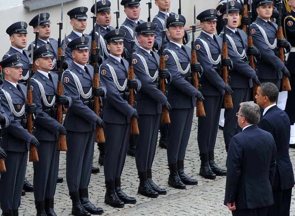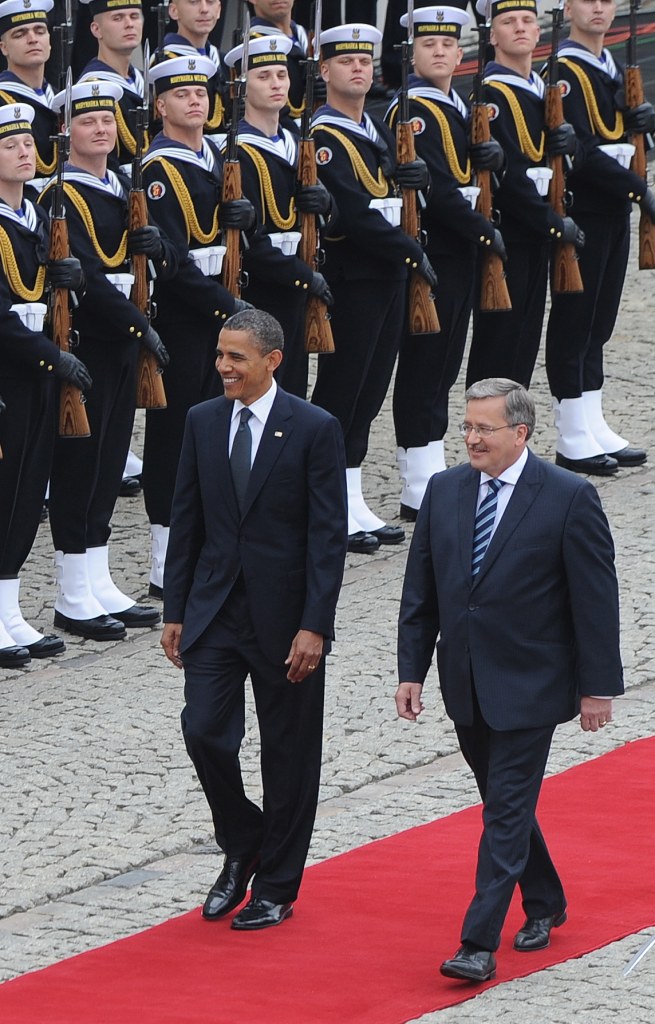 Po przyjeździe Obamy do Pałacu odegrano hymny Stanów Zjednoczonych i Polski, następnie prezydenci odebrali meldunek dowódcy Kompanii Honorowej Wojska Polskiego.