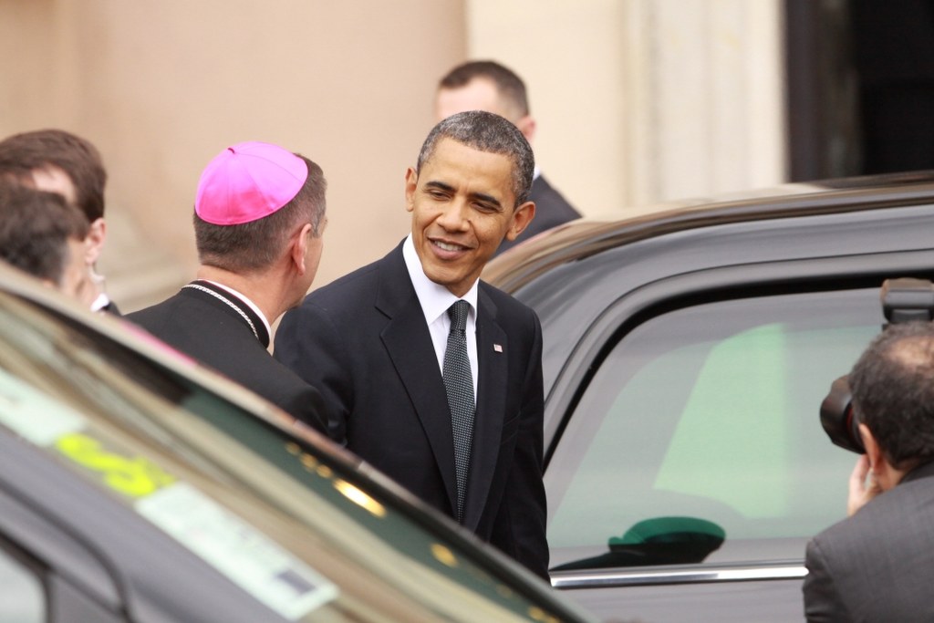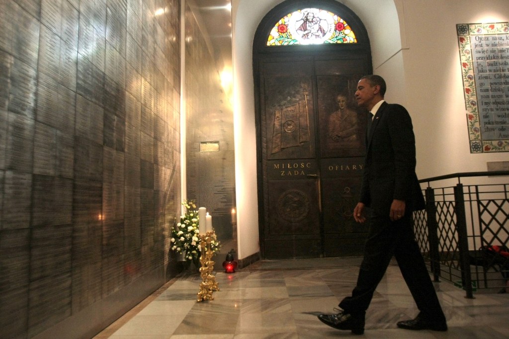 Barack Obama spotkał się w Katedrze Polowej Wojska Polskiego z bliskimi ofiar katastrofy smoleńskiej. Z prezydentem USA rozmawiali m.in. prezes PiS Jarosław Kaczyński oraz córka tragicznie zmarłej pary prezydenckiej Marta Kaczyńska. Obama złożył także kwiaty i oddał hołd przed tablicą, upamiętniającą wszystkie ofiary katastrofy smoleńskiej.