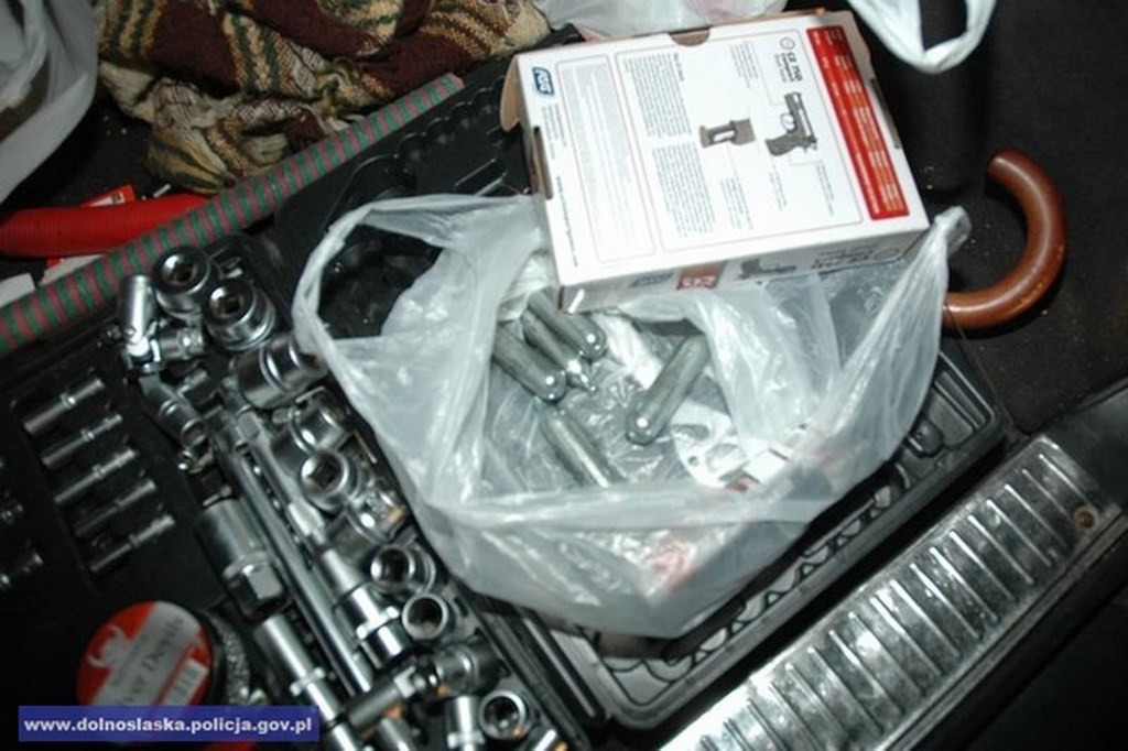Podejrzewani wpadli w ręce policjantów podczas kontroli drogowej. W ich mercedesie funkcjonariusze znaleźli pistolet pneumatyczny z magazynkiem.