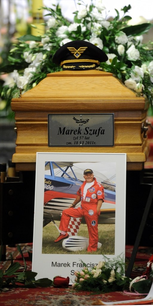 Na warszawskich Powązkach pochowano pilota Marka Szufę, który zginął w wypadku samolotowym 18 czerwca podczas V Płockiego Pikniku Lotniczego. "Był najlepszym z najlepszych, mistrzem podniebnych lotów" - mówił bp polowy Józef Guzdek podczas mszy w intencji Szufy. Pilot został pochowany w asyście Kompanii Honorowej na Powązkach.