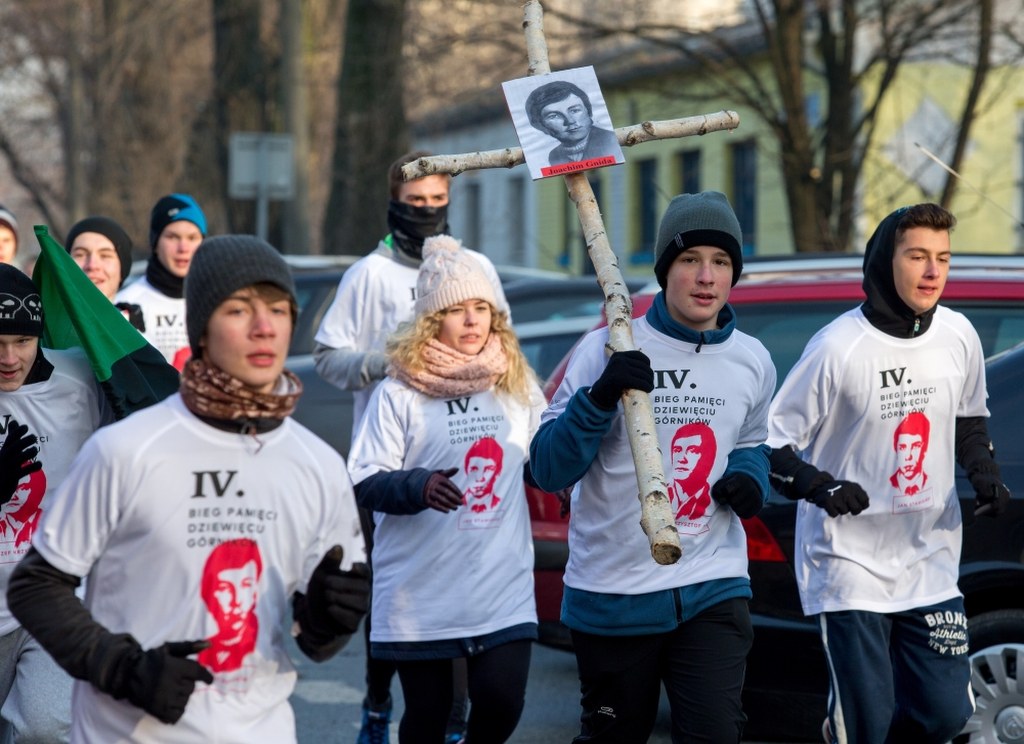 Inicjatorem młodzieżowego biegu dla uczczenia poległych górników było Śląskie Centrum Wolności i Solidarności, pielęgnujące pamięć o tamtych wydarzeniach. Uczniowie ok. 40 szkół gimnazjalnych i średnich - dziewięcioro z każdej ze szkół - przybiegli przed pomnik w koszulkach z wizerunkami zastrzelonych górników. Bieg miał formułę maratonu lub sztafety.
