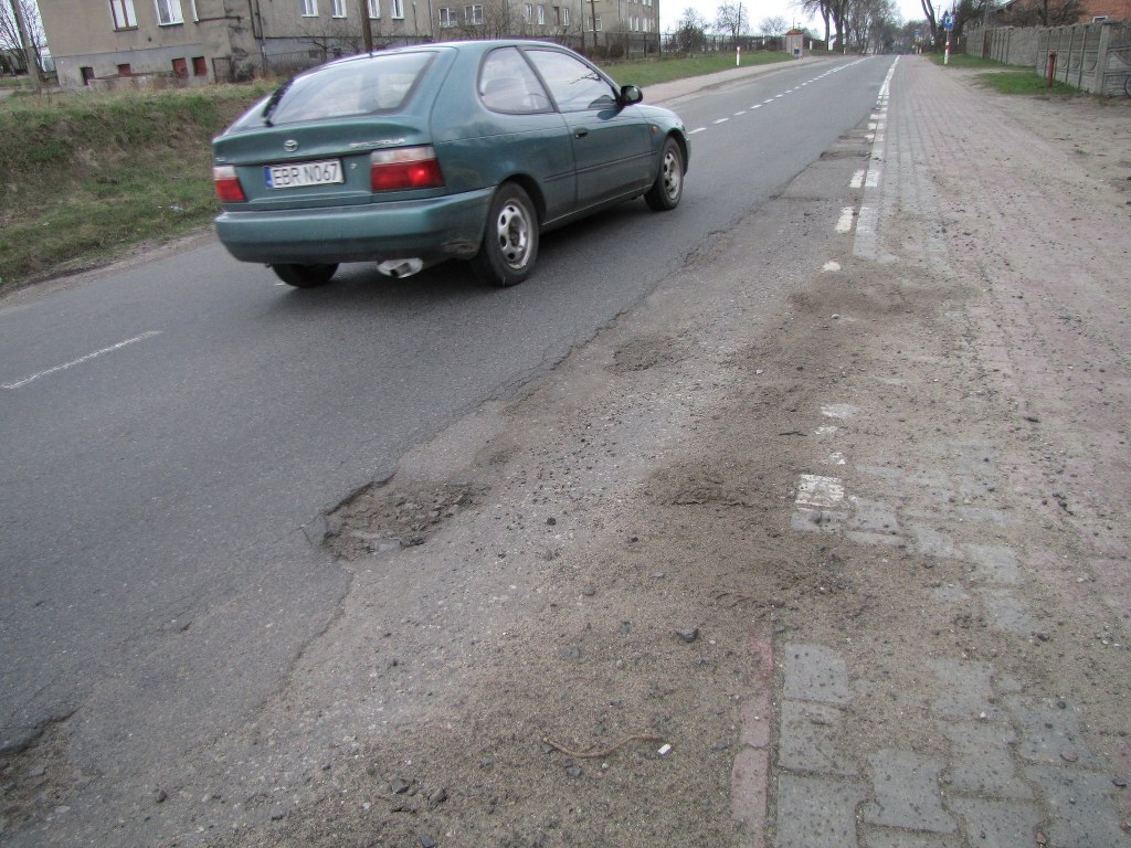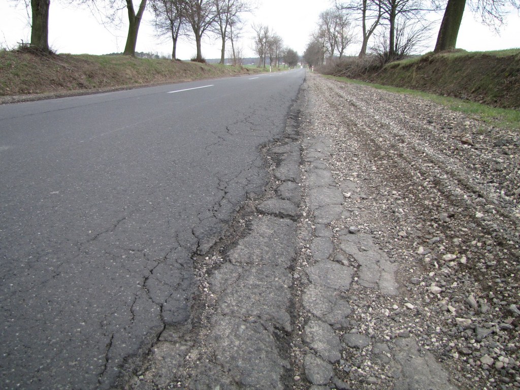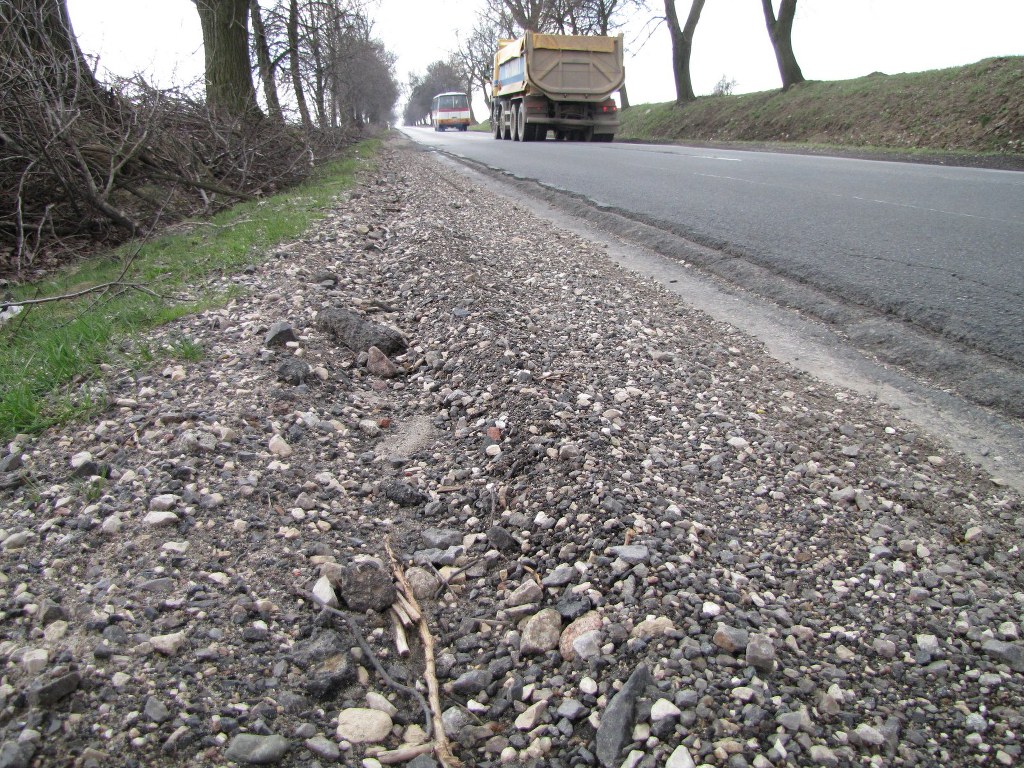 Jeden z najbardziej zniszczonych odcinków to droga wojewódzka 704 pomiędzy Brzezinami a Kołacinem.