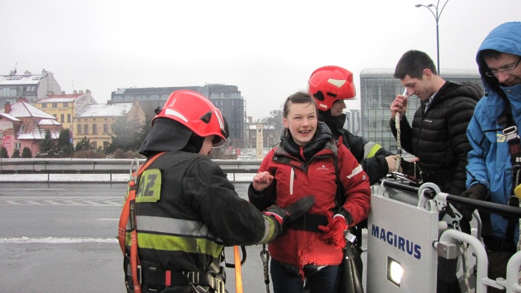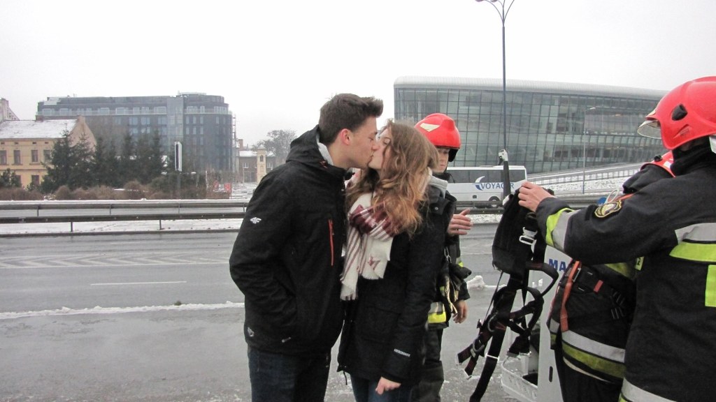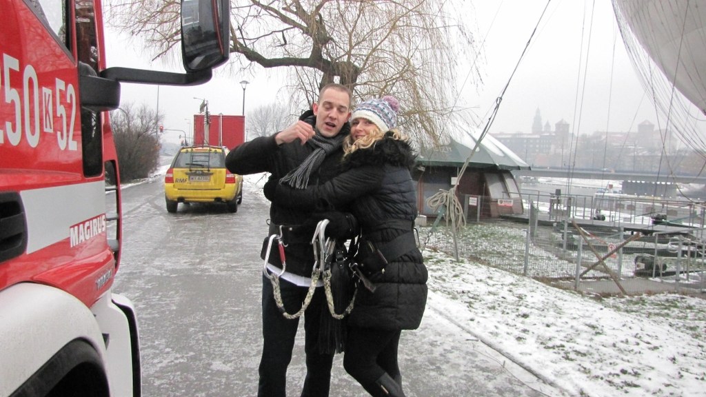 Pogoda niestraszna zakochanym w Krakowie! Podniebne zaręczyny z RMF FM odbyły się, mimo marznącego deszczu i silnego wiatru. Trzy pary zamiast w balonie, wzniosły się w powietrze w koszu drabiny strażackiej.