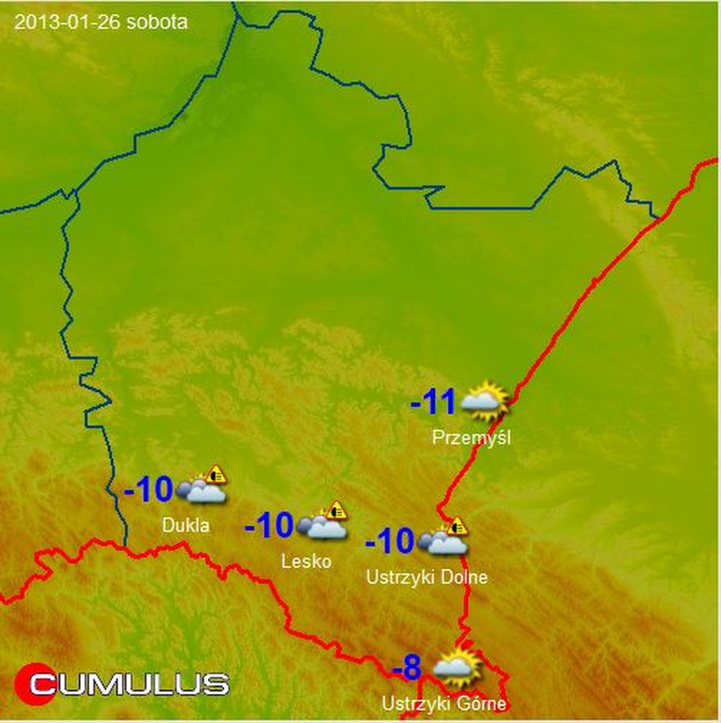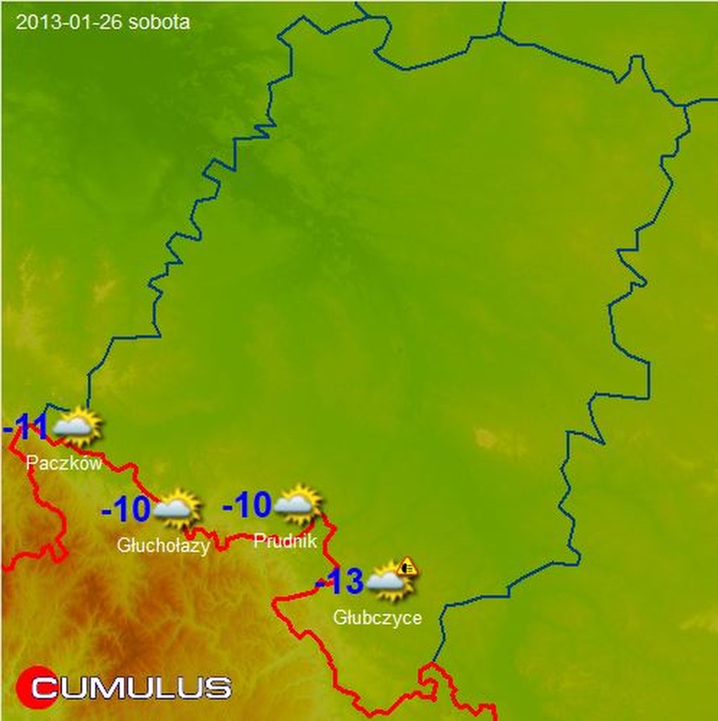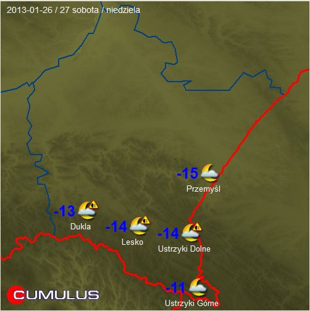 Sobota zapowiada się w miarę słonecznie i bez opadów. Będzie bardzo zimno. Od minus 11 do minus 7 stopni Celsjusza. Pogodnie i chłodno także w niedzielę. Dopiero pod koniec dnia na zachodzie kraju (od woj. zachodniopomorskiego przez woj. lubuskie po Dolny Śląsk) niebo szczelnie przykryją chmury. Wówczas możliwy marznący deszcz powodujący gołoledź.