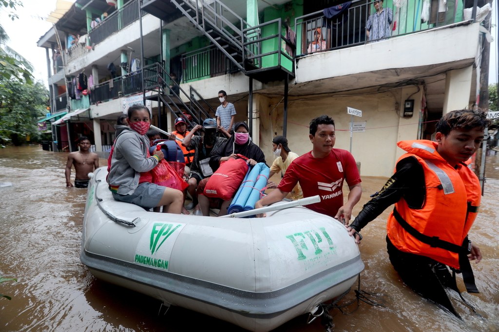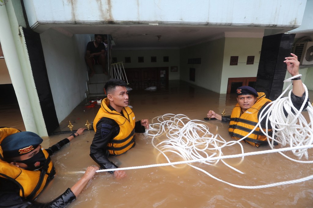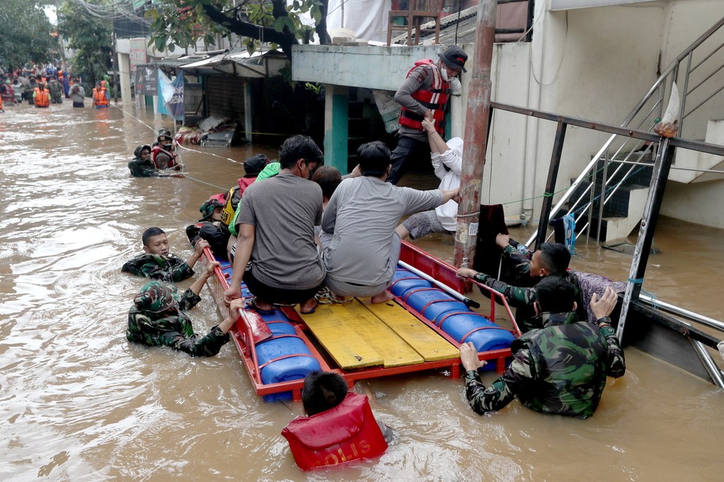 Materiały filmowe z Dżakarty publikowane w sieciach społecznościowych pokazują ludzi, którzy opuszczają najbardziej zagrożone rejony, brodząc w błotnistej, sięgającej po pachy wodzie.