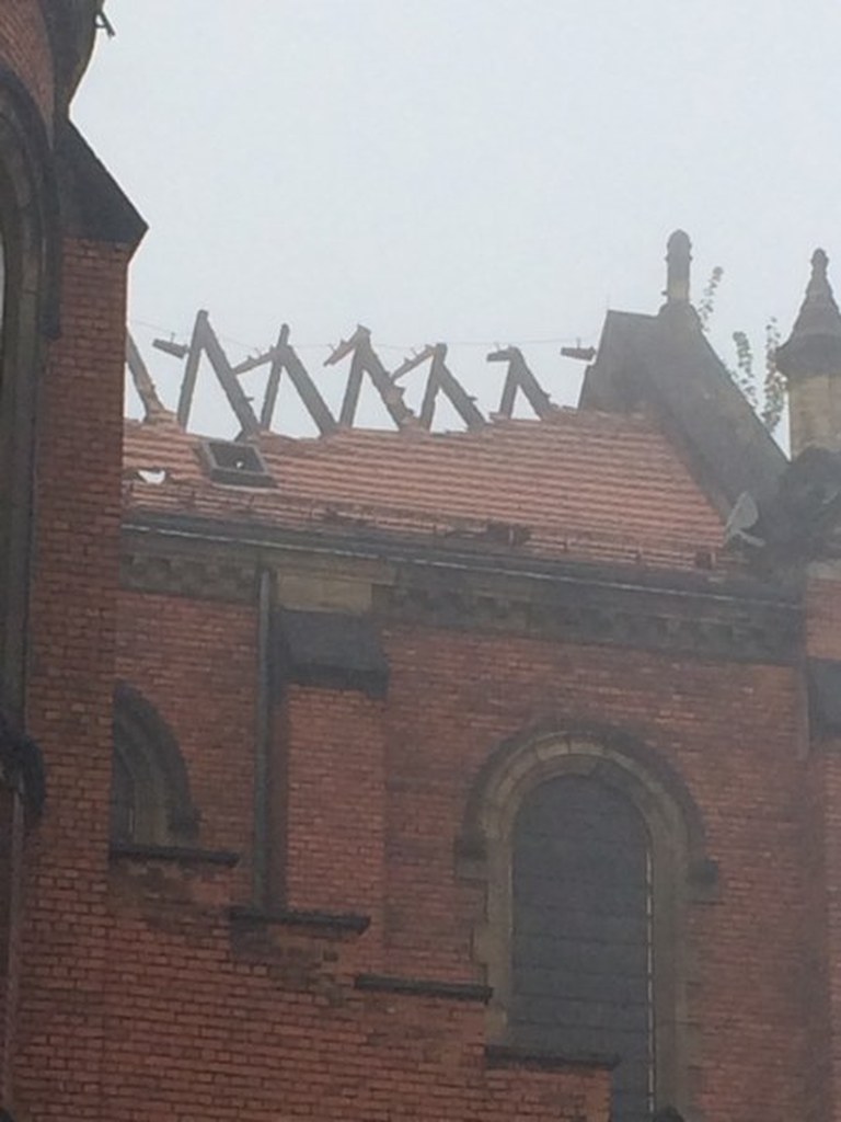 Spłonął cały dach kościoła, strażakom udało się natomiast uratować wieżę, która została nienaruszona.