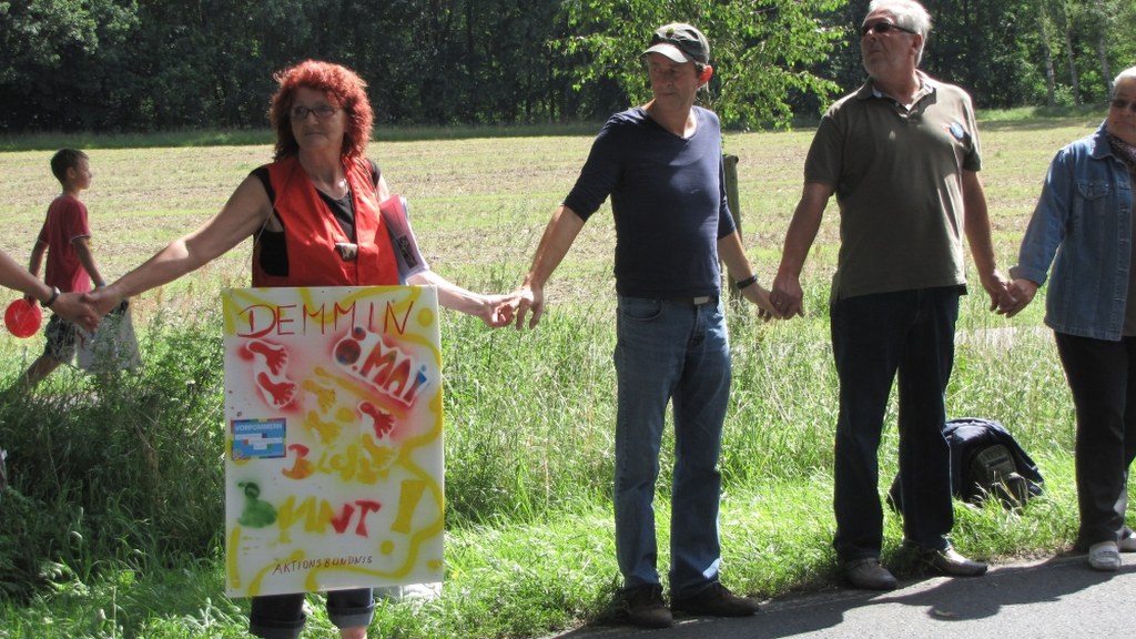 Sygnał do utworzenia łańcucha dały bijące dzwony w okolicznych kościołów. Stanęło w nim około 2 tysięcy osób. Przeciwnicy spotkania nacjonalistów wywiesili wzdłuż 4-kilometrowej drogi dziesiątki plakatów z napisami w języku polskim o treści: "Wynocha naziści", "To nie jest miejsce dla neonazistów", czy "Serdecznie witam".