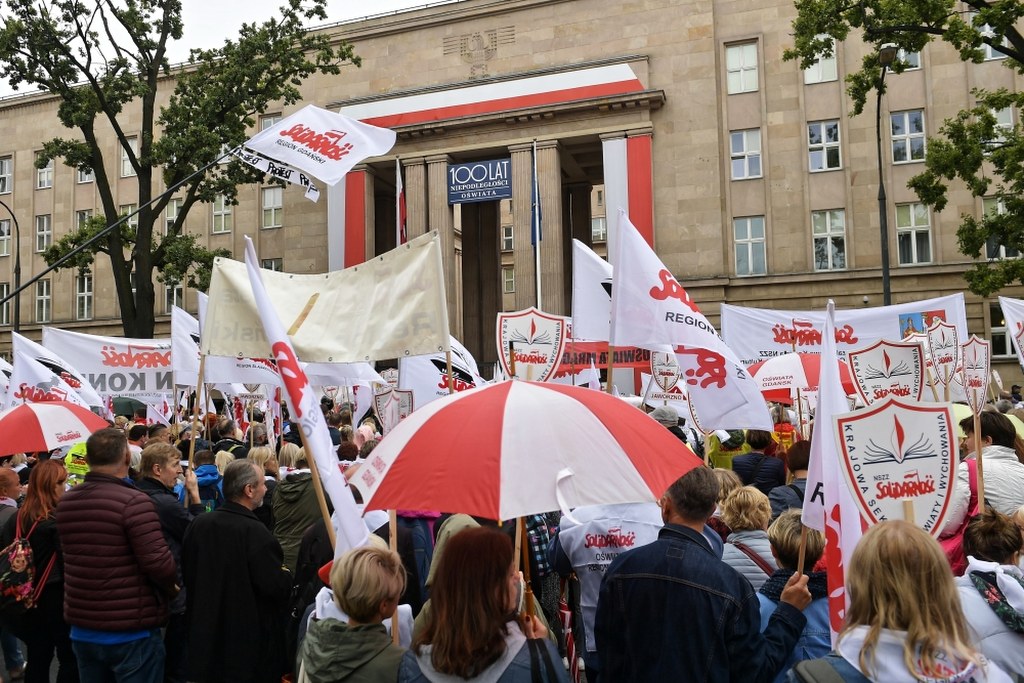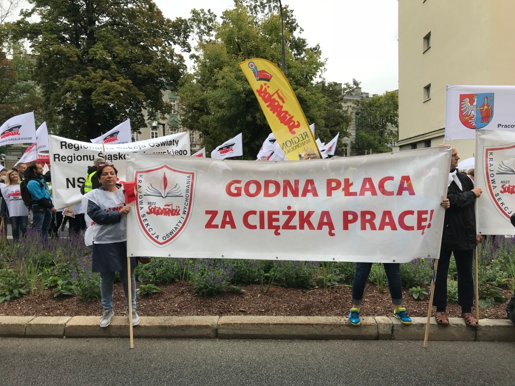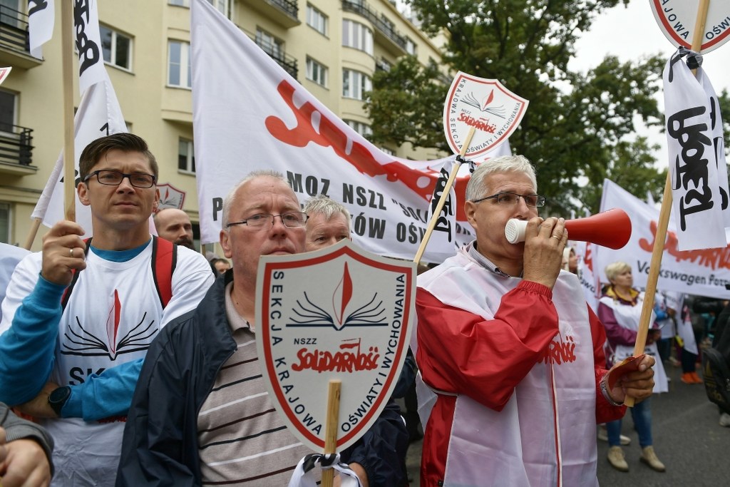 Kilka minut trwało spotkanie delegacji nauczycielskiej "Solidarności" z minister edukacji narodowej Anną Zalewską. Setki związkowców protestowały w sobotę przed gmachem resortu w Warszawie. Demonstrujący przynieśli szefowej MEN czerwoną kartkę. Protestujący domagają się m.in. podwyżek płac.