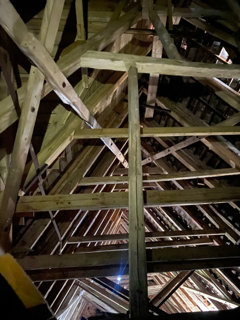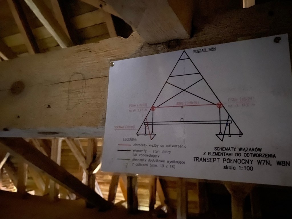 Fakt, że poddasze przetrwało w tak dobrym stanie tyle stuleci, to ewenement. Według przekazów historycznych kościół miał być zniszczony w 1308 roku podczas najazdu wojsk brandenburskich. Zniszczona została też wieża, tu ślady ognia było widać na belkach.