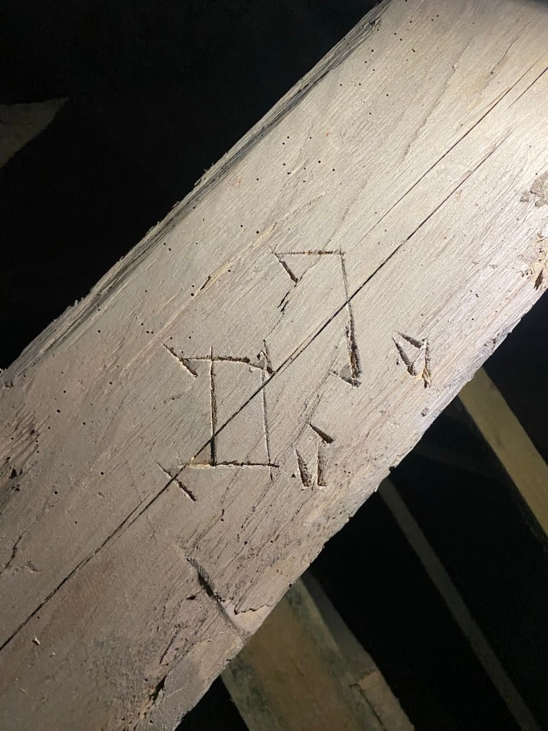 Do budowy więźby użyto dębów ściętych na pobliskiej wyspie Wolin. Jak odkryli badacze, są na nich ślady spławiania bali do Kamienia. Są też znaki wypalane na krokwiach przez ekipy, które budowały kościół. To z jednej strony był podpis kolejnego zespołu, z drugiej - oznaczenie, w którym miejscu należało umieścić konkretny element.