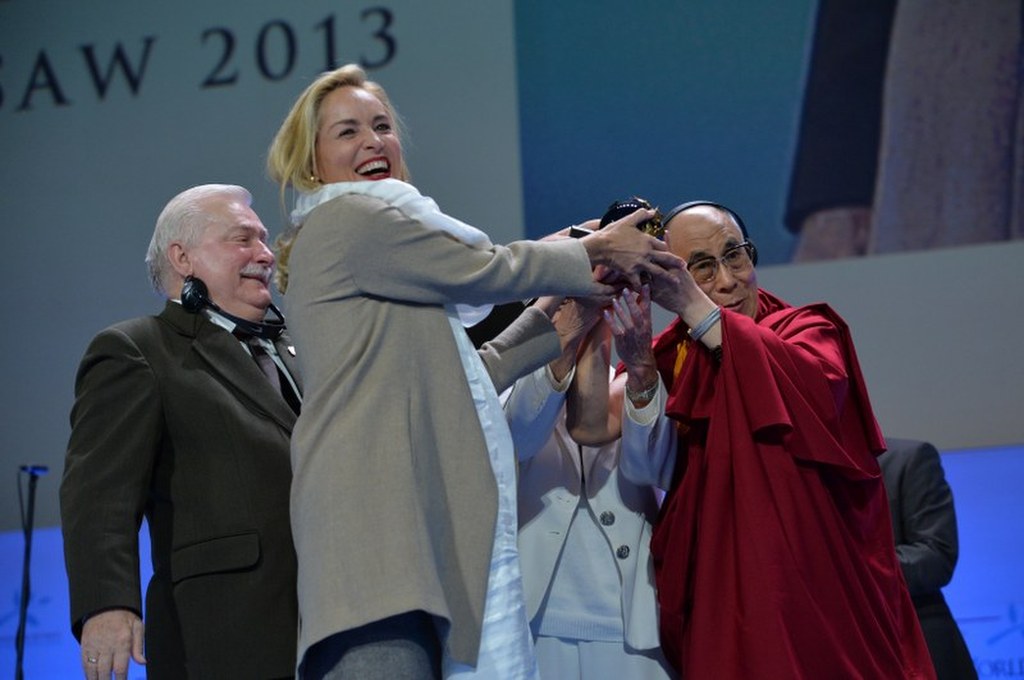 Sharon Stone, amerykańska aktorka, producentka i działaczka dobroczynna odebrała w Warszawie Nagrodę Pokoju. Nagroda została jej wręczona na zakończenie XIII Światowego Szczytu Laureatów Pokojowej Nagrody Nobla.