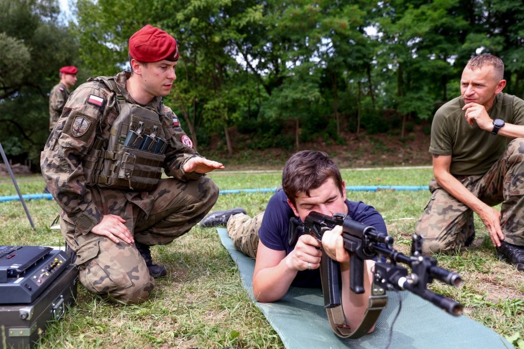 Uczestnicy sami mają okazję zobaczyć, jak to jest na przykład wisieć pod czaszą spadochronu na ćwiczebnych uprzężach, uczą się także celowania bronią, bezpiecznego posługiwania się nią, jest także rzut granatem - mówi kpt. Agata Niemyjska.