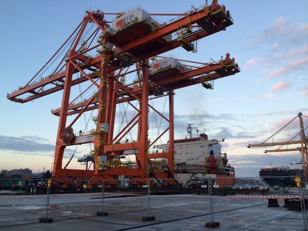 Rozładunek to bardzo trudna operacja. Każda z suwnic ma ponad 60 metrów wysokości, waży około 900 ton i rozładowywana jest w całości. Po specjalnie ustawionych szynach urządzenie było zsuwane ze statku na ląd. Tam na nabrzeżu, na podobnych szynach suwnica została ustawiona. Na jutrzejszy poranek natomiast planowany jest rozładunek, drugiej, takiej samej maszyny.