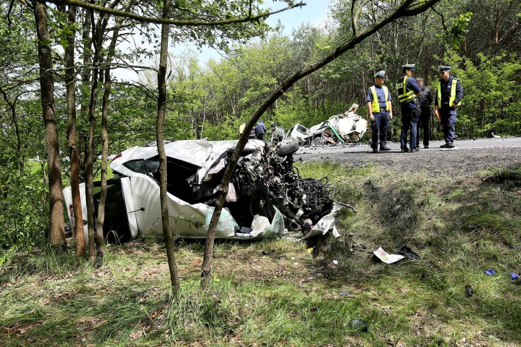 Auto zostało zmiażdżone, jego kierowca poniósł śmierć na miejscu.